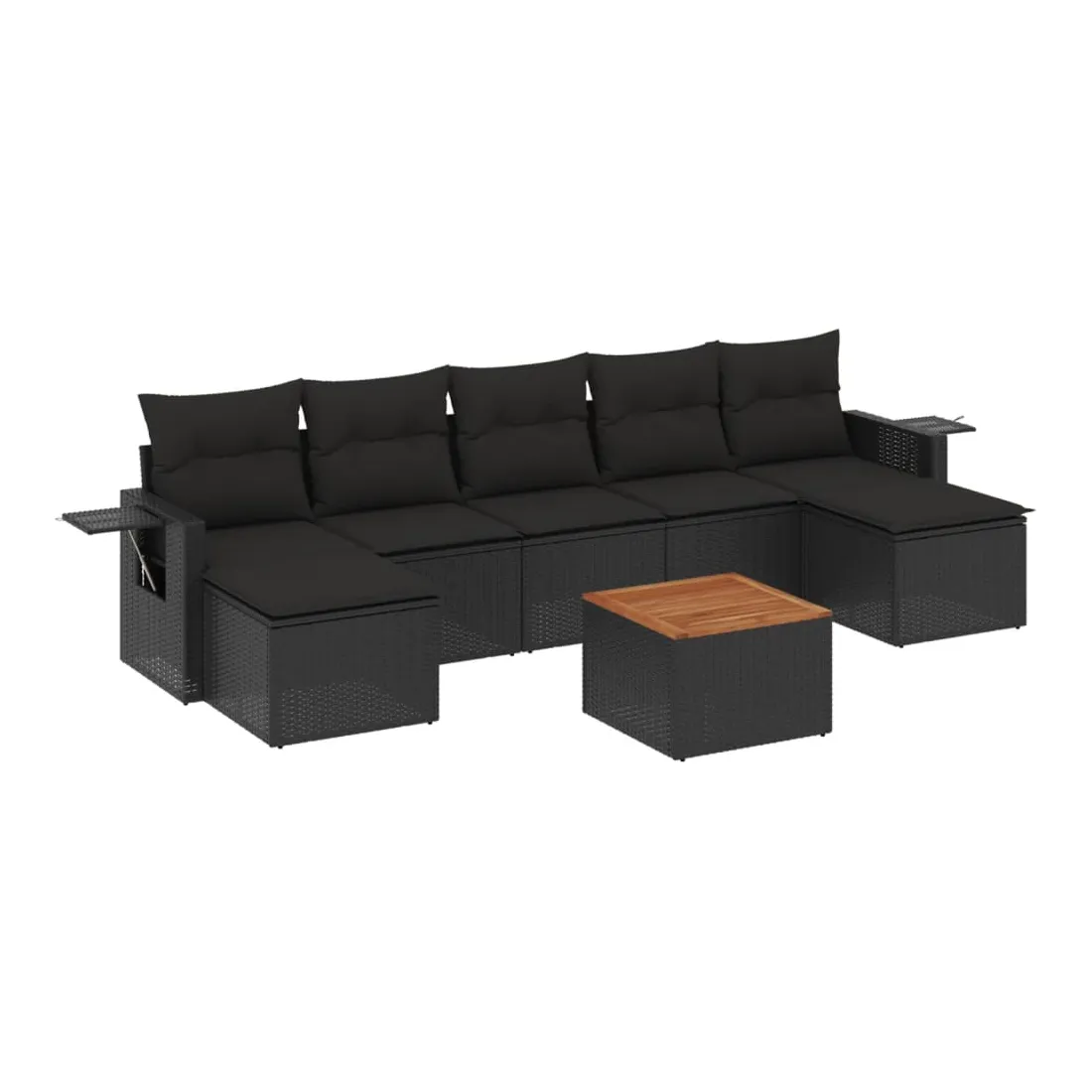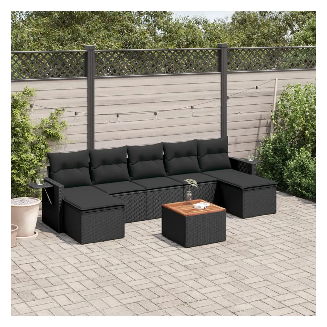 Cet ensemble de canapés de jardin est le complément parfait de votre arrière-cour, terrasse ou patio, offrant un espace confortable et accueillant pour discuter avec la famille et les amis ou simplement se détendre et profiter de l'extérieur. Matériau durable : la résine tressée, également connue sous le nom de poly rotin, est un matériau synthétique solide et nécessitant peu d'entretien qui ressemble au rotin naturel. Il est léger, facile à nettoyer et couramment utilisé pour les meubles d'extérieur en raison de sa durabilité et de ses propriétés de résistance aux intempéries.Fonction de rangement avec sac résistant à l'eau : chaque siège de jardin dispose d'un espace de rangement sous l'assise, complété par un sac résistant à l'eau pour ranger les coussins, les jouets et d'autres objets. Les sacs intérieurs sont dotés d'un couvercle et peuvent être solidement fixés aux sièges à l'aide de bandes auto-agrippantes pour plus de stabilité.Dessus stable et facile à nettoyer : cette table de jardin a un dessus en bois d'acacia robuste, durable et facile à nettoyer avec un chiffon humide.Table d'appoint pratique : ce mobilier d'extérieur comprend des tables d'appoint pliables avec un ressort à gaz sur les accoudoirs, offrant des endroits pratiques pour garder vos essentiels à portée de main.Conception modulaire : cet ensemble de meubles d'extérieur a une conception modulaire, ce qui le rend complètement flexible et facile à déplacer, afin que vous puissiez créer un agencement de meubles d'extérieur personnalisé. Bon à savoir :Pour que vos meubles d'extérieur restent beaux, nous vous recommandons de les protéger avec une housse imperméable.