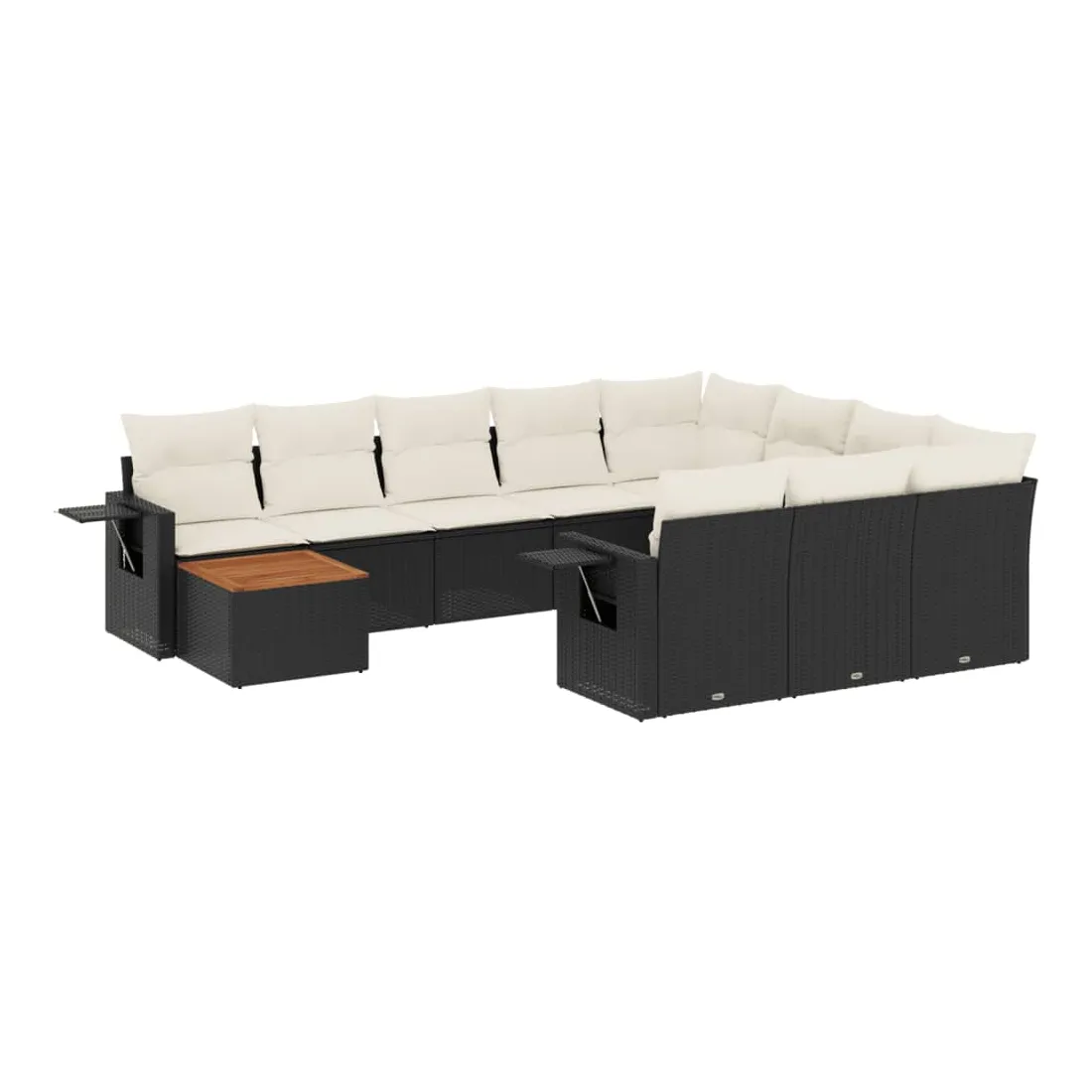 Salon de jardin 11 pcs avec coussins noir résine tressée