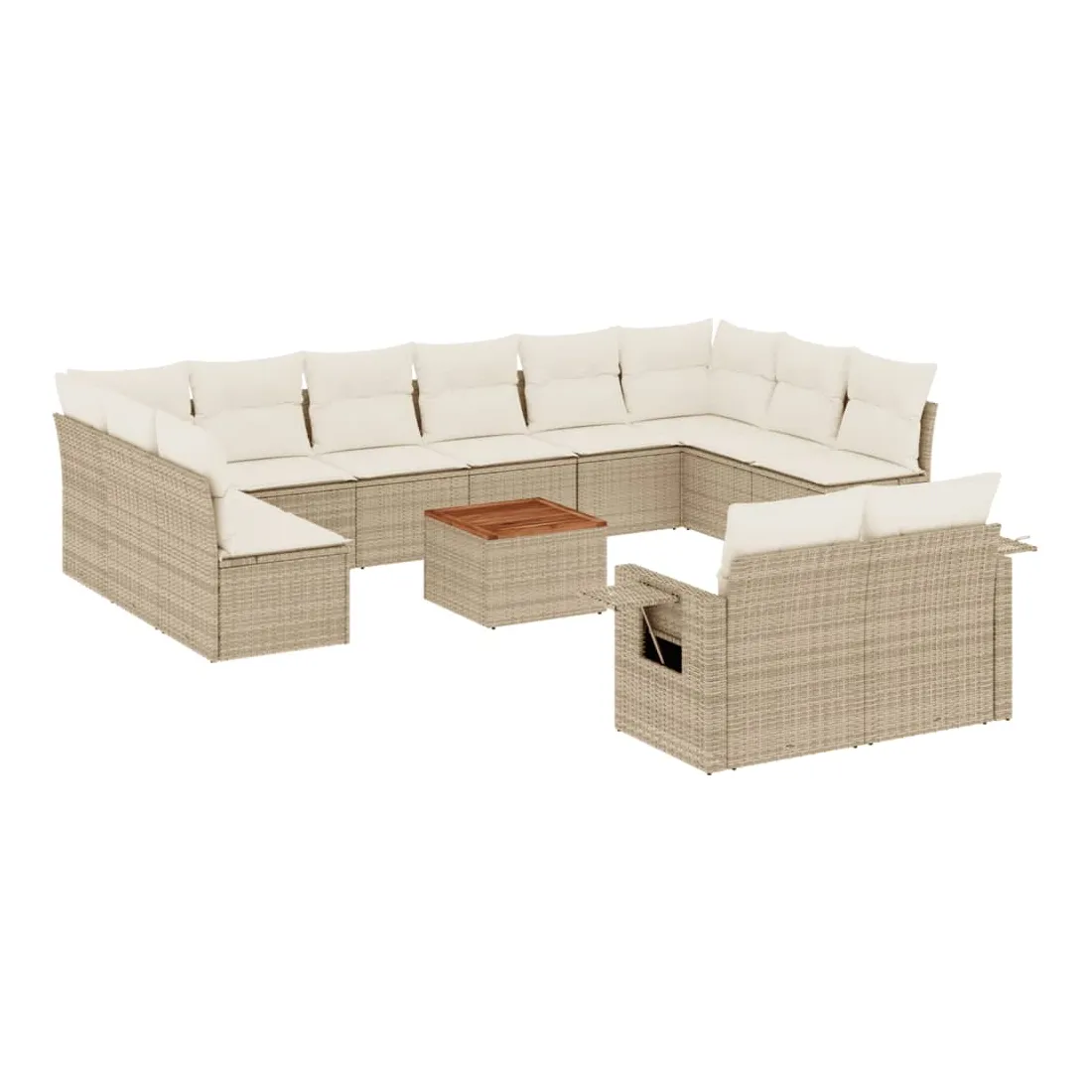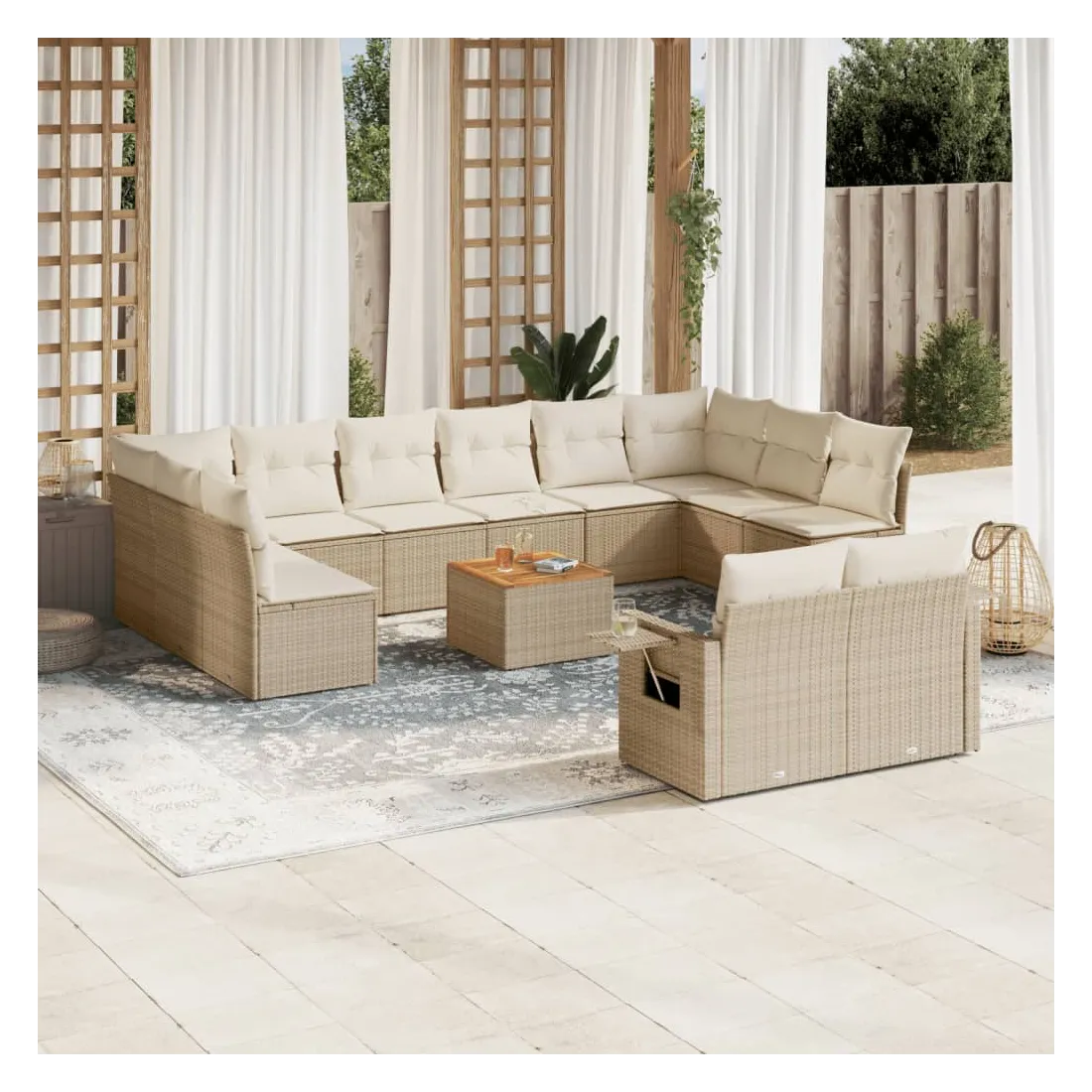 Cet ensemble de canapés de jardin est le complément parfait de votre arrière-cour, terrasse ou patio, offrant un espace confortable et accueillant pour discuter avec la famille et les amis ou simplement se détendre et profiter de l'extérieur. Matériau durable : la résine tressée, également connue sous le nom de poly rotin, est un matériau synthétique solide et nécessitant peu d'entretien qui ressemble au rotin naturel. Il est léger, facile à nettoyer et couramment utilisé pour les meubles d'extérieur en raison de sa durabilité et de ses propriétés de résistance aux intempéries.Fonction de rangement avec sac résistant à l'eau : chaque siège de jardin dispose d'un espace de rangement sous l'assise, complété par un sac résistant à l'eau pour ranger les coussins, les jouets et d'autres objets. Les sacs intérieurs sont dotés d'un couvercle et peuvent être solidement fixés aux sièges à l'aide de bandes auto-agrippantes pour plus de stabilité.Dessus stable et facile à nettoyer : cette table de jardin a un dessus en bois d'acacia robuste, durable et facile à nettoyer avec un chiffon humide.Table d'appoint pratique : ce mobilier d'extérieur comprend des tables d'appoint pliables avec un ressort à gaz sur les accoudoirs, offrant des endroits pratiques pour garder vos essentiels à portée de main.Conception modulaire : cet ensemble de meubles d'extérieur a une conception modulaire, ce qui le rend complètement flexible et facile à déplacer, afin que vous puissiez créer un agencement de meubles d'extérieur personnalisé. Bon à savoir :Pour que vos meubles d'extérieur restent beaux, nous vous recommandons de les protéger avec une housse imperméable.
