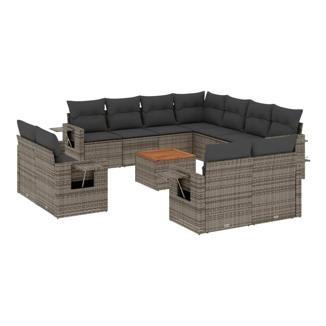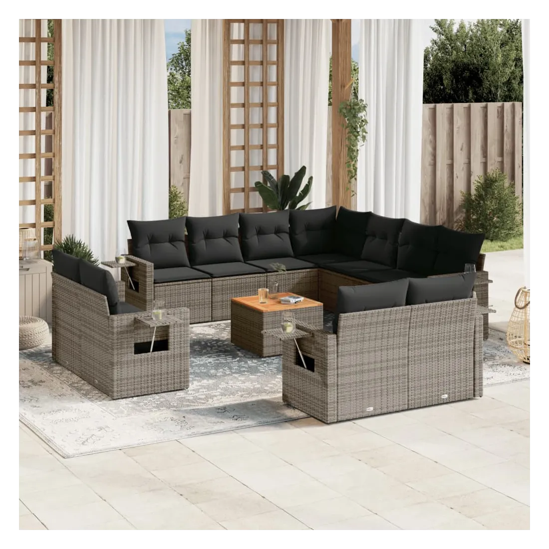 Cet ensemble de canapés de jardin est le complément parfait de votre arrière-cour, terrasse ou patio, offrant un espace confortable et accueillant pour discuter avec la famille et les amis ou simplement se détendre et profiter de l'extérieur. Matériau durable : la résine tressée, également connue sous le nom de poly rotin, est un matériau synthétique solide et nécessitant peu d'entretien qui ressemble au rotin naturel. Il est léger, facile à nettoyer et couramment utilisé pour les meubles d'extérieur en raison de sa durabilité et de ses propriétés de résistance aux intempéries.Fonction de rangement avec sac résistant à l'eau : chaque siège de jardin dispose d'un espace de rangement sous l'assise, complété par un sac résistant à l'eau pour ranger les coussins, les jouets et d'autres objets. Les sacs intérieurs sont dotés d'un couvercle et peuvent être solidement fixés aux sièges à l'aide de bandes auto-agrippantes pour plus de stabilité.Dessus stable et facile à nettoyer : cette table de jardin a un dessus en bois d'acacia robuste, durable et facile à nettoyer avec un chiffon humide.Table d'appoint pratique : ce mobilier d'extérieur comprend des tables d'appoint pliables avec un ressort à gaz sur les accoudoirs, offrant des endroits pratiques pour garder vos essentiels à portée de main.Conception modulaire : cet ensemble de meubles d'extérieur a une conception modulaire, ce qui le rend complètement flexible et facile à déplacer, afin que vous puissiez créer un agencement de meubles d'extérieur personnalisé. Bon à savoir :Pour que vos meubles d'extérieur restent beaux, nous vous recommandons de les protéger avec une housse imperméable.