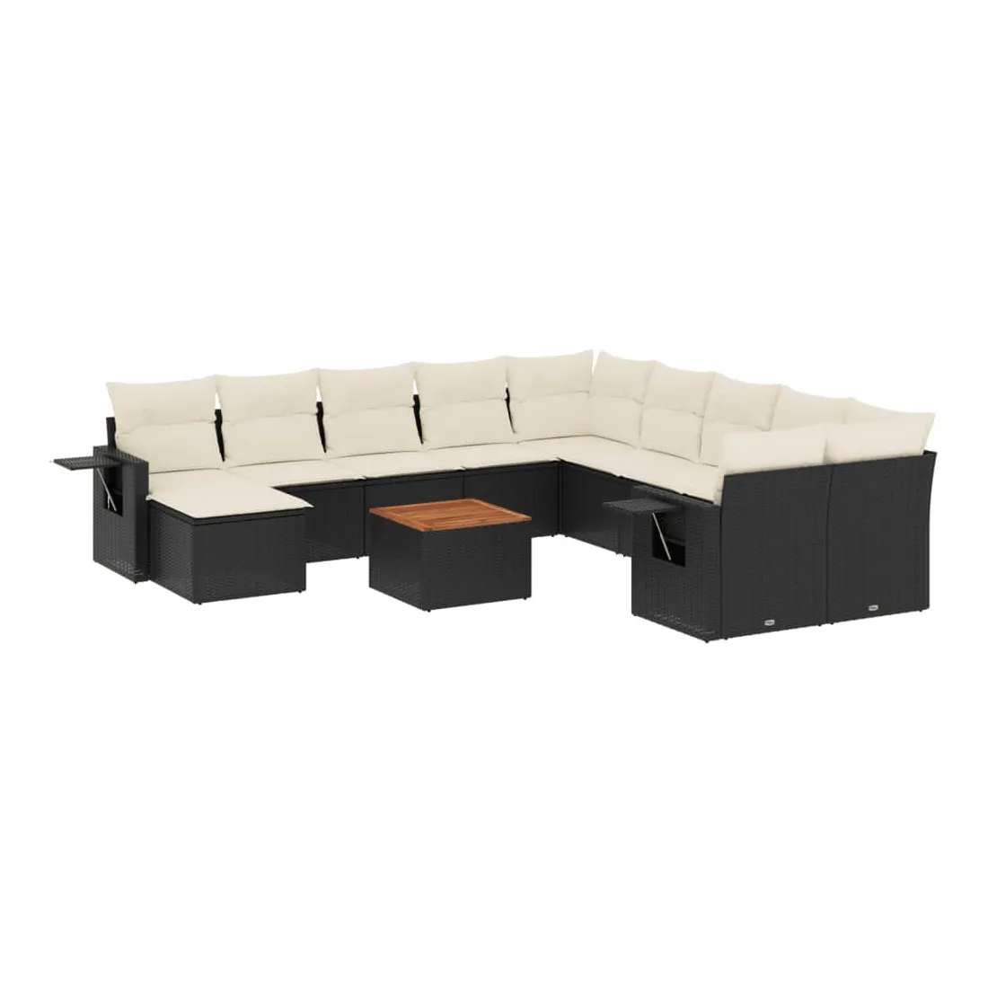 Cet ensemble de canapés de jardin est le complément parfait de votre arrière-cour, terrasse ou patio, offrant un espace confortable et accueillant pour discuter avec la famille et les amis ou simplement se détendre et profiter de l'extérieur. Matériau durable : la résine tressée, également connue sous le nom de poly rotin, est un matériau synthétique solide et nécessitant peu d'entretien qui ressemble au rotin naturel. Il est léger, facile à nettoyer et couramment utilisé pour les meubles d'extérieur en raison de sa durabilité et de ses propriétés de résistance aux intempéries.Fonction de rangement avec sac résistant à l'eau : chaque siège de jardin dispose d'un espace de rangement sous l'assise, complété par un sac résistant à l'eau pour ranger les coussins, les jouets et d'autres objets. Les sacs intérieurs sont dotés d'un couvercle et peuvent être solidement fixés aux sièges à l'aide de bandes auto-agrippantes pour plus de stabilité.Dessus stable et facile à nettoyer : cette table de jardin a un dessus en bois d'acacia robuste, durable et facile à nettoyer avec un chiffon humide.Table d'appoint pratique : ce mobilier d'extérieur comprend des tables d'appoint pliables avec un ressort à gaz sur les accoudoirs, offrant des endroits pratiques pour garder vos essentiels à portée de main.Conception modulaire : cet ensemble de meubles d'extérieur a une conception modulaire, ce qui le rend complètement flexible et facile à déplacer, afin que vous puissiez créer un agencement de meubles d'extérieur personnalisé. Bon à savoir :Pour que vos meubles d'extérieur restent beaux, nous vous recommandons de les protéger avec une housse imperméable.