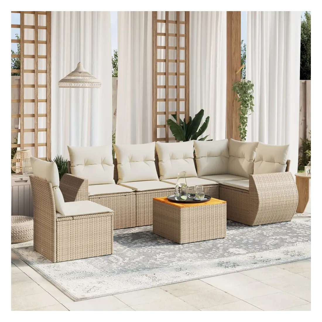 Salon de jardin avec coussins 7 pcs beige résine tressée