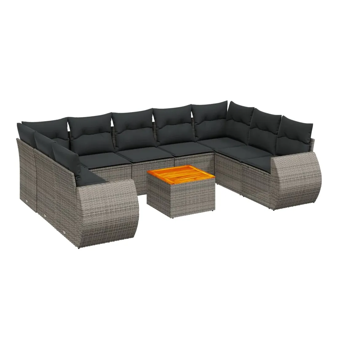 Salon de jardin avec coussins 10 pcs gris résine tressée