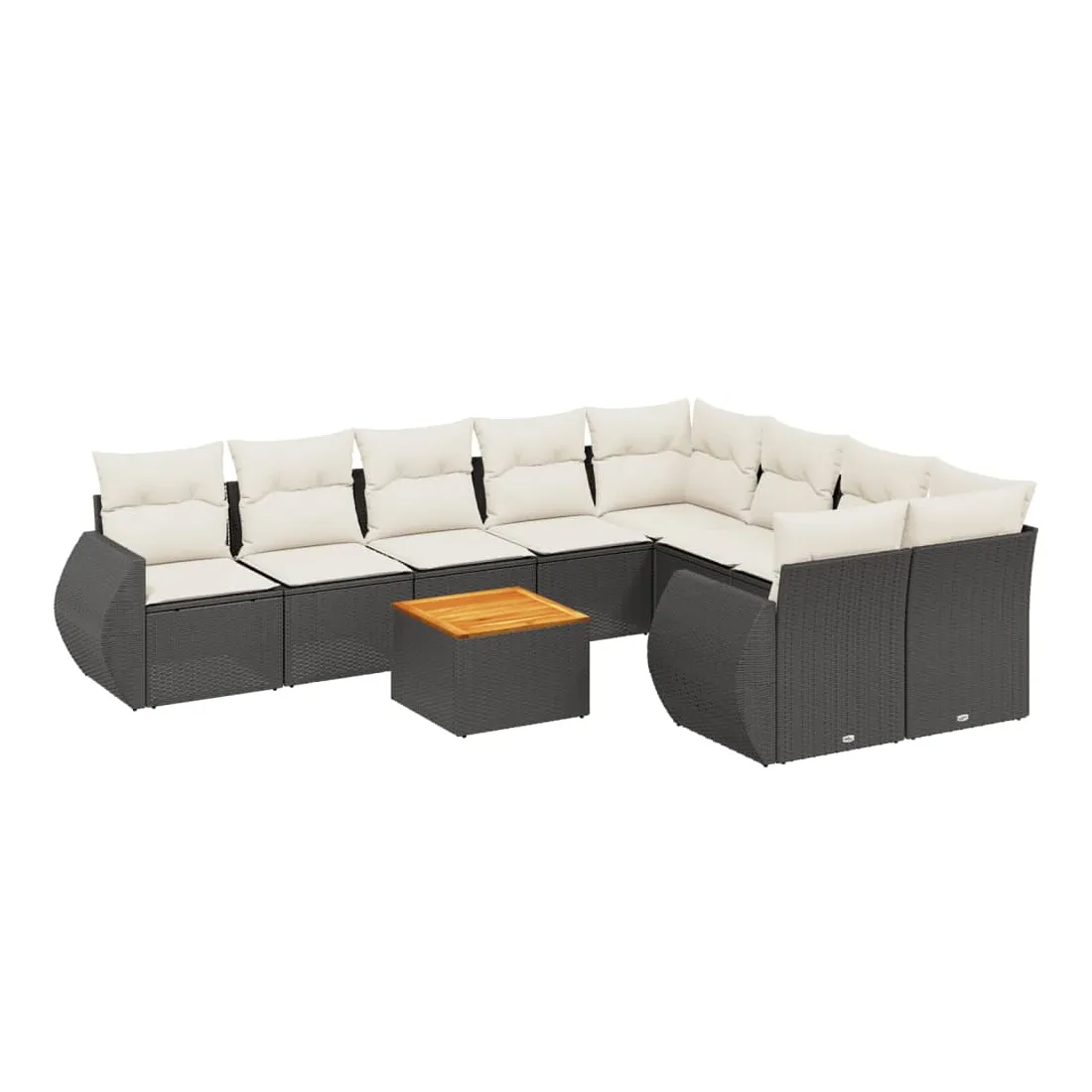 Cet ensemble de canapés de jardin est le complément parfait de votre arrière-cour, terrasse ou patio, offrant un espace confortable et accueillant pour discuter avec la famille et les amis ou simplement se détendre et profiter de l'extérieur. Matériau durable : la résine tressée, également connue sous le nom de poly rotin, est un matériau synthétique solide et nécessitant peu d'entretien qui ressemble au rotin naturel. Il est léger, facile à nettoyer et couramment utilisé pour les meubles d'extérieur en raison de sa durabilité et de ses propriétés de résistance aux intempéries.Dessus stable et facile à nettoyer : cette table de jardin a un dessus en bois d'acacia robuste, durable et facile à nettoyer avec un chiffon humide. Fonction de rangement avec sac résistant à l'eau : chaque siège de jardin dispose d'un espace de rangement sous l'assise, complété par un sac résistant à l'eau pour ranger les coussins, les jouets et d'autres objets. Les sacs intérieurs sont dotés d'un couvercle et peuvent être solidement fixés aux sièges à l'aide de bandes auto-agrippantes pour plus de stabilité.Expérience d'assise confortable : ce mobilier d'extérieur, doté de coussins épais, offre une expérience d'assise confortable.Conception modulaire : cet ensemble de meubles d'extérieur a une conception modulaire, ce qui le rend complètement flexible et facile à déplacer, afin que vous puissiez créer un agencement de meubles d'extérieur personnalisé. Bon à savoir :Pour que vos meubles d'extérieur restent beaux, nous vous recommandons de les protéger avec une housse imperméable.