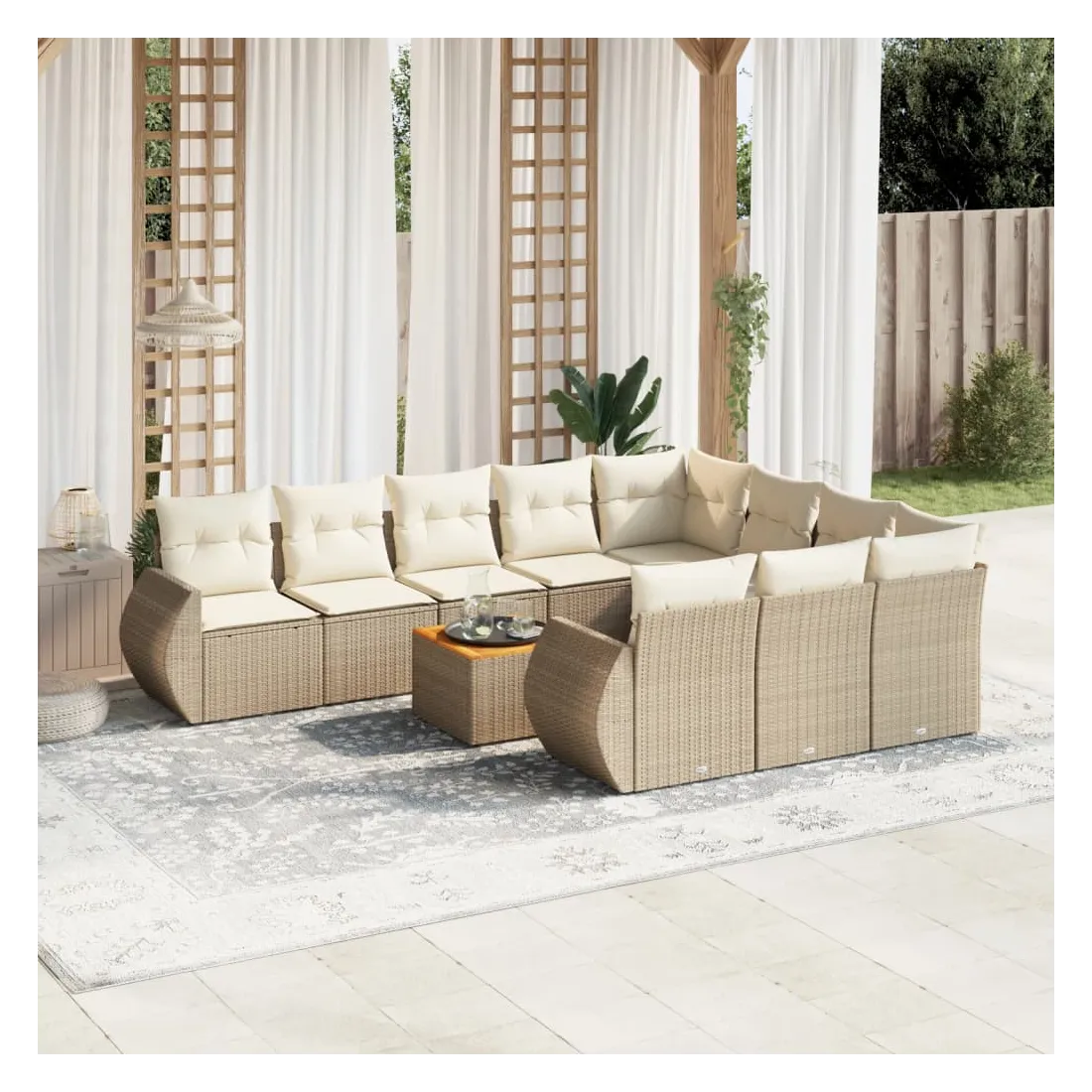 Salon de jardin 11 pcs avec coussins beige résine tressée