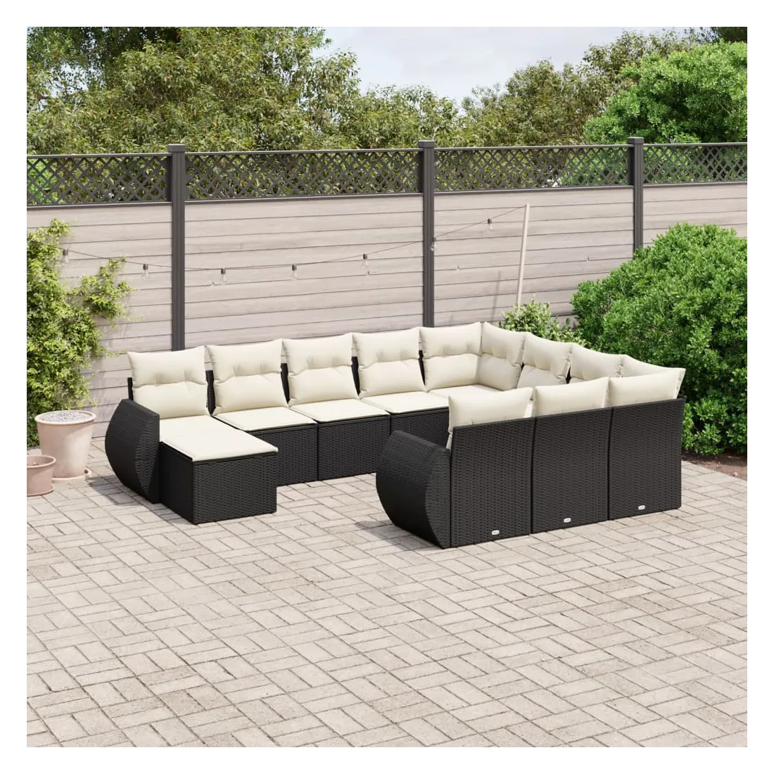 Salon de jardin 11 pcs avec coussins noir résine tressée