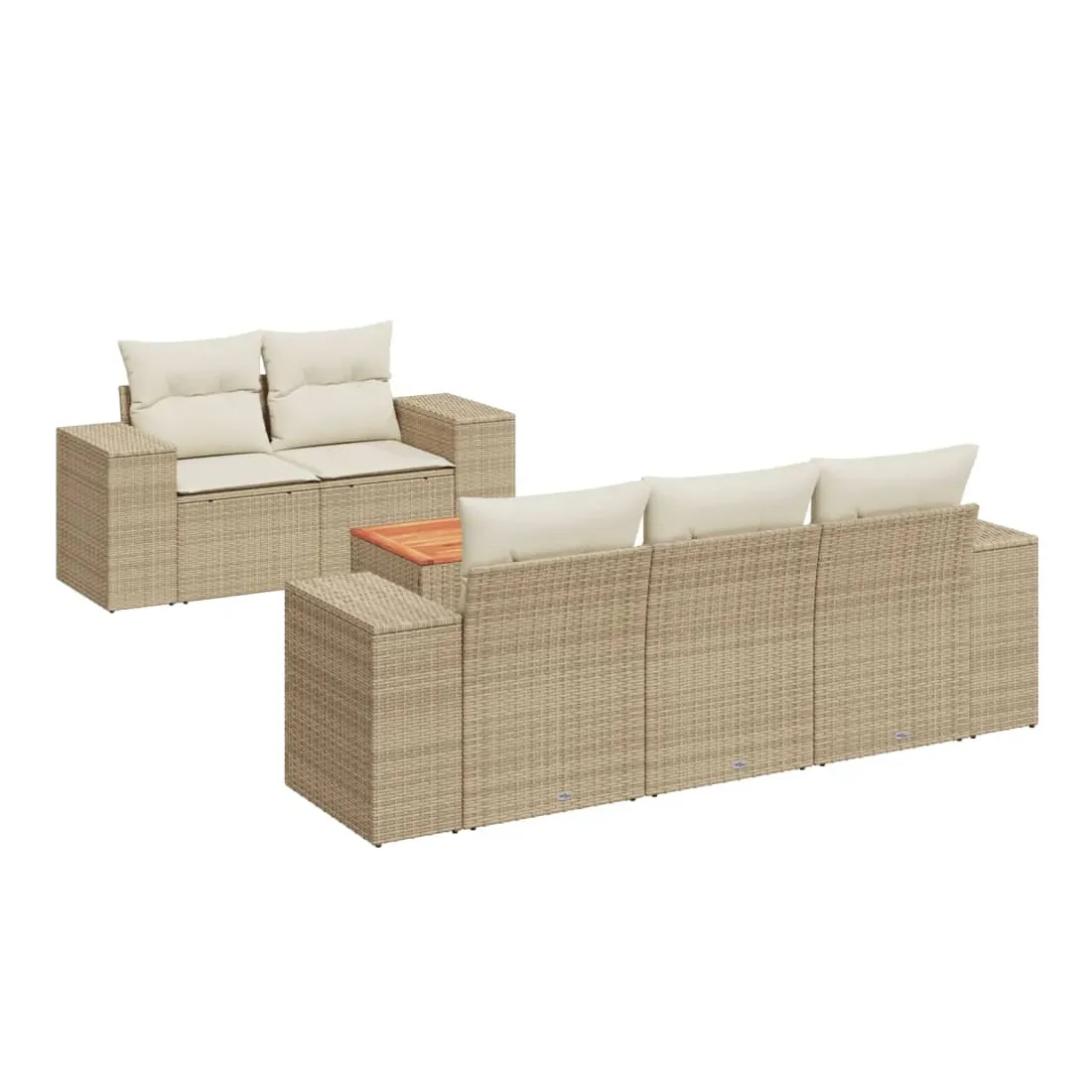 Cet ensemble de canapés de jardin est le complément parfait de votre arrière-cour, terrasse ou patio, offrant un espace confortable et accueillant pour discuter avec la famille et les amis ou simplement se détendre et profiter de l'extérieur. Matériau durable : la résine tressée, également connue sous le nom de poly rotin, est un matériau synthétique solide et nécessitant peu d'entretien qui ressemble au rotin naturel. Il est léger, facile à nettoyer et couramment utilisé pour les meubles d'extérieur en raison de sa durabilité et de ses propriétés de résistance aux intempéries. Fonction de rangement avec sac résistant à l'eau : chaque siège de jardin dispose d'un espace de rangement sous l'assise, complété par un sac résistant à l'eau pour ranger les coussins, les jouets et d'autres objets. Les sacs intérieurs sont dotés d'un couvercle et peuvent être solidement fixés aux sièges à l'aide de bandes auto-agrippantes pour plus de stabilité. Dessus stable et facile à nettoyer : cette table de jardin a un dessus en bois d'acacia robuste, durable et facile à nettoyer avec un chiffon humide. Expérience d'assise confortable : ce mobilier d'extérieur, doté de coussins épais, offre une expérience d'assise confortable. Conception modulaire : cet ensemble de meubles d'extérieur a une conception modulaire, ce qui le rend complètement flexible et facile à déplacer, afin que vous puissiez créer un agencement de meubles d'extérieur personnalisé. Bon à savoir :Pour que vos meubles d'extérieur restent beaux, nous vous recommandons de les protéger avec une housse imperméable.