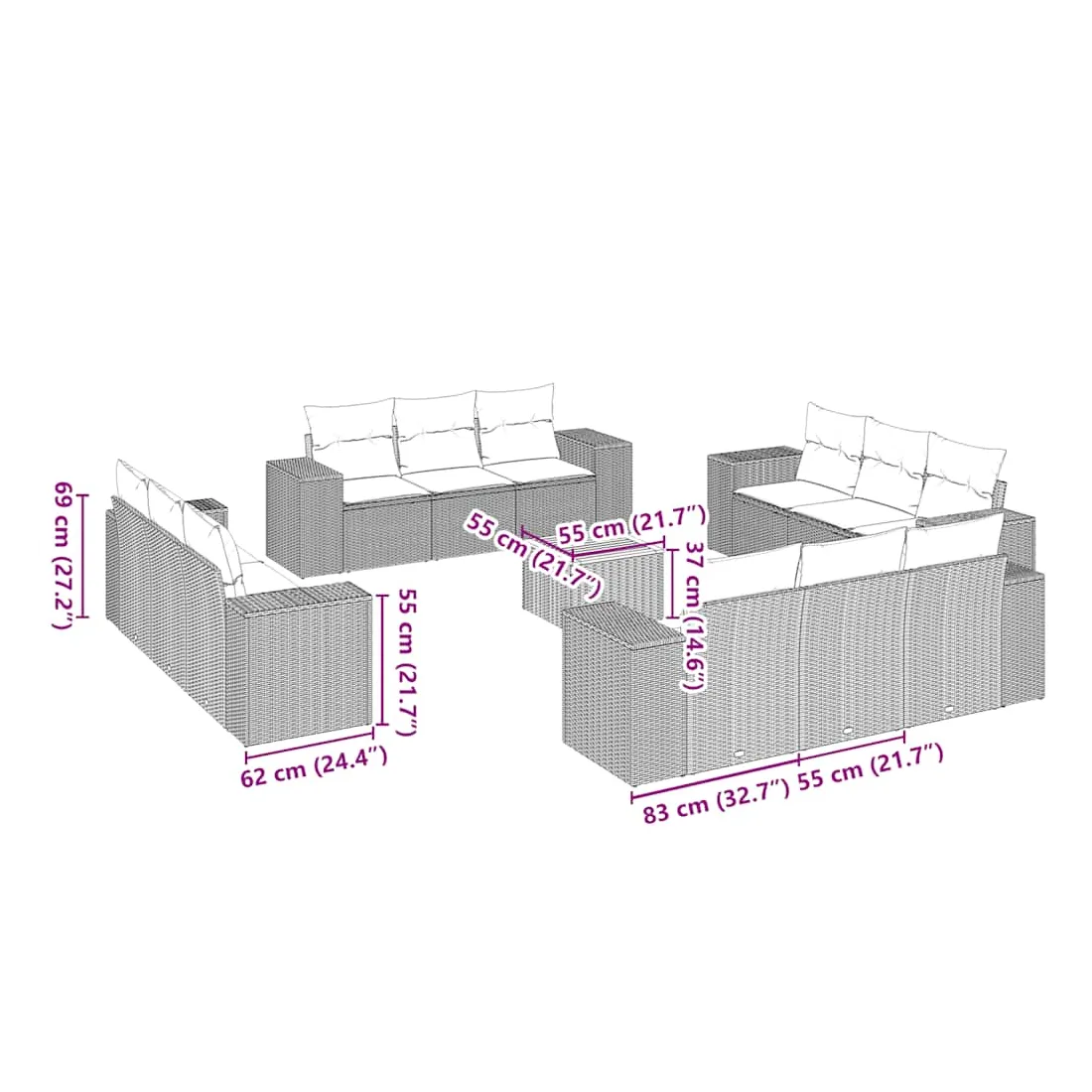 - Dimensions : 55 x 55 x 37 cm (L x l x H)