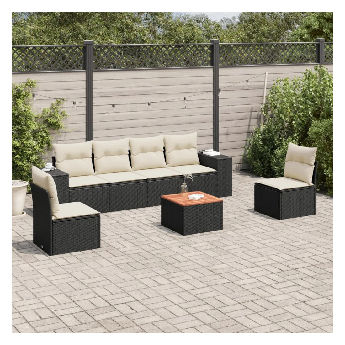 Cet ensemble de canapés de jardin est le complément parfait de votre arrière-cour, terrasse ou patio, offrant un espace confortable et accueillant pour discuter avec la famille et les amis ou simplement se détendre et profiter de l'extérieur. Matériau durable : la résine tressée, également connue sous le nom de poly rotin, est un matériau synthétique solide et nécessitant peu d'entretien qui ressemble au rotin naturel. Il est léger, facile à nettoyer et couramment utilisé pour les meubles d'extérieur en raison de sa durabilité et de ses propriétés de résistance aux intempéries. Fonction de rangement avec sac résistant à l'eau : chaque siège de jardin dispose d'un espace de rangement sous l'assise, complété par un sac résistant à l'eau pour ranger les coussins, les jouets et d'autres objets. Les sacs intérieurs sont dotés d'un couvercle et peuvent être solidement fixés aux sièges à l'aide de bandes auto-agrippantes pour plus de stabilité. Dessus stable et facile à nettoyer : cette table de jardin a un dessus en bois d'acacia robuste, durable et facile à nettoyer avec un chiffon humide. Expérience d'assise confortable : ce mobilier d'extérieur, doté de coussins épais, offre une expérience d'assise confortable. Conception modulaire : cet ensemble de meubles d'extérieur a une conception modulaire, ce qui le rend complètement flexible et facile à déplacer, afin que vous puissiez créer un agencement de meubles d'extérieur personnalisé. Bon à savoir :Pour que vos meubles d'extérieur restent beaux, nous vous recommandons de les protéger avec une housse imperméable.