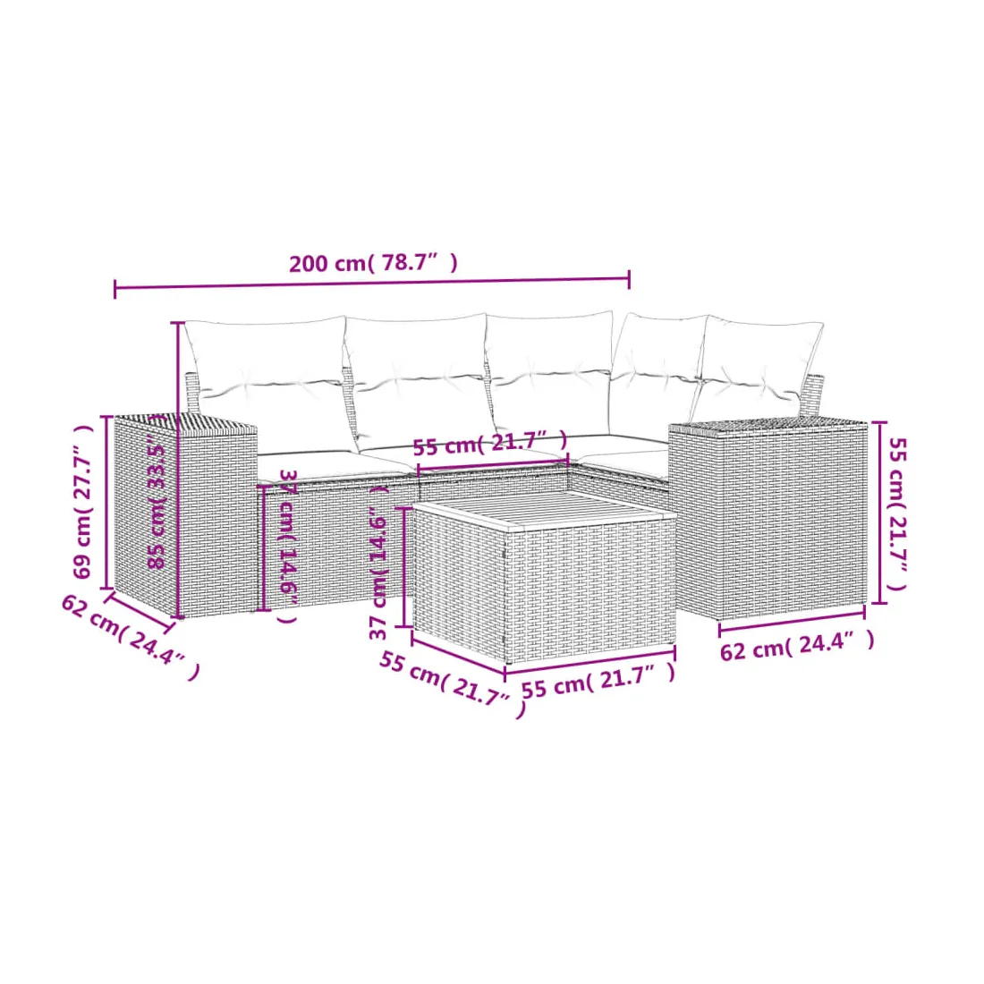 - Dimensions : 55 x 55 x 37 cm (L x l x H)