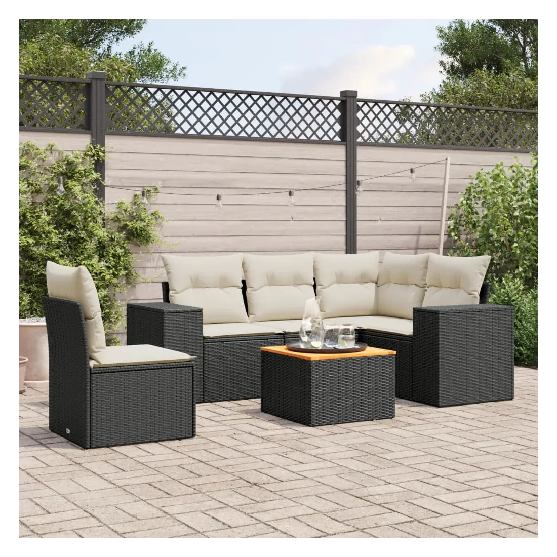 Cet ensemble de canapés de jardin est le complément parfait de votre arrière-cour, terrasse ou patio, offrant un espace confortable et accueillant pour discuter avec la famille et les amis ou simplement se détendre et profiter de l'extérieur. Matériau durable : la résine tressée, également connue sous le nom de poly rotin, est un matériau synthétique solide et nécessitant peu d'entretien qui ressemble au rotin naturel. Il est léger, facile à nettoyer et couramment utilisé pour les meubles d'extérieur en raison de sa durabilité et de ses propriétés de résistance aux intempéries.Dessus stable et facile à nettoyer : cette table de jardin a un dessus en bois d'acacia robuste, durable et facile à nettoyer avec un chiffon humide. Fonction de rangement avec sac résistant à l'eau : chaque siège de jardin dispose d'un espace de rangement sous l'assise, complété par un sac résistant à l'eau pour ranger les coussins, les jouets et d'autres objets. Les sacs intérieurs sont dotés d'un couvercle et peuvent être solidement fixés aux sièges à l'aide de bandes auto-agrippantes pour plus de stabilité.Expérience d'assise confortable : ce mobilier d'extérieur, doté de coussins épais, offre une expérience d'assise confortable.Conception modulaire : cet ensemble de meubles d'extérieur a une conception modulaire, ce qui le rend complètement flexible et facile à déplacer, afin que vous puissiez créer un agencement de meubles d'extérieur personnalisé. Bon à savoir :Pour que vos meubles d'extérieur restent beaux, nous vous recommandons de les protéger avec une housse imperméable.