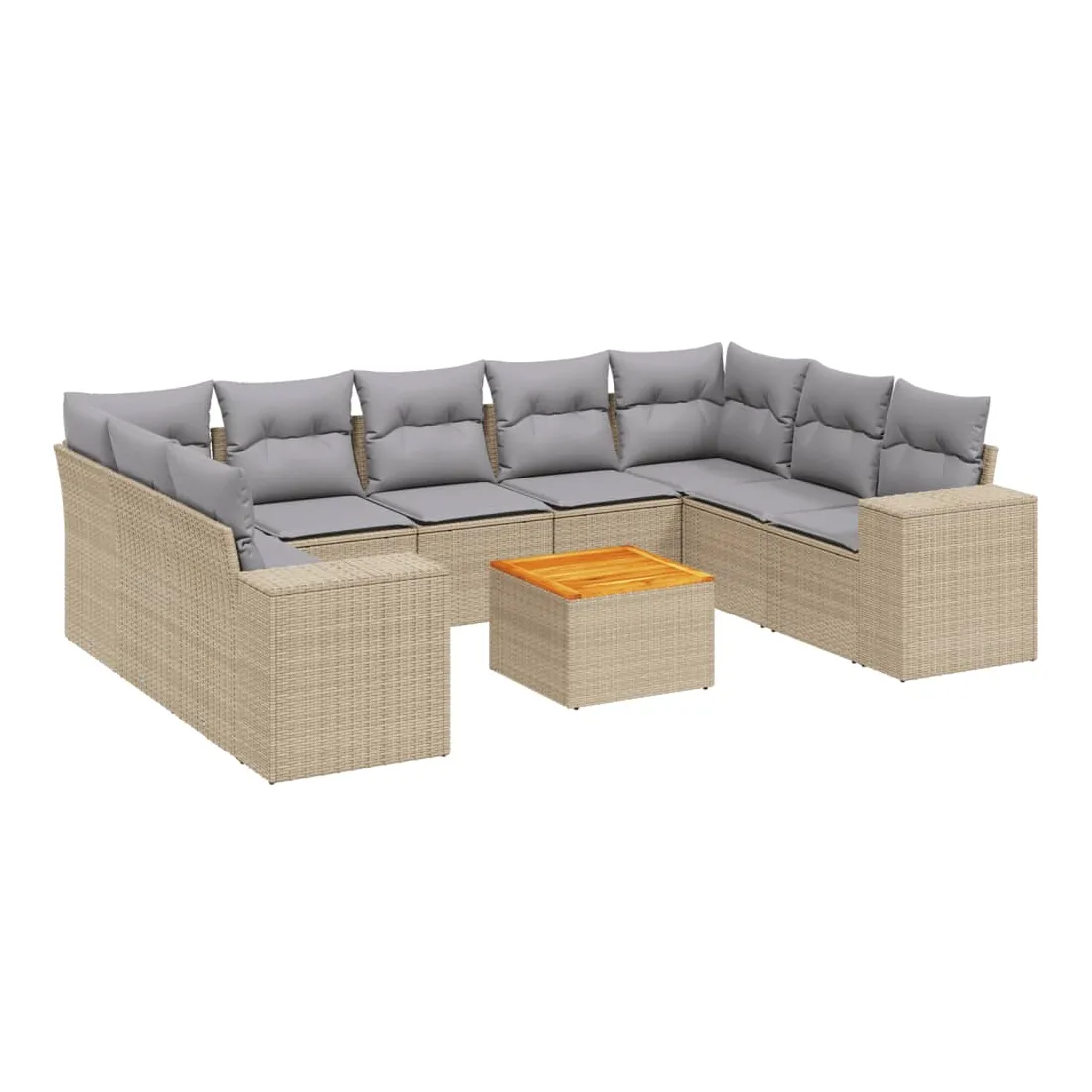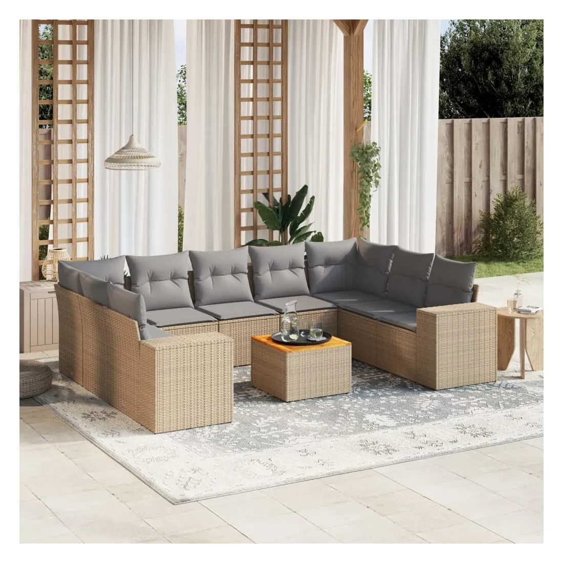 Salon de jardin avec coussins 10 pcs beige résine tressée