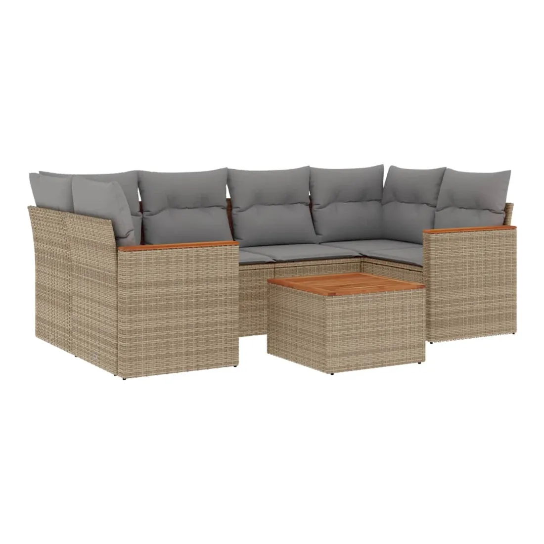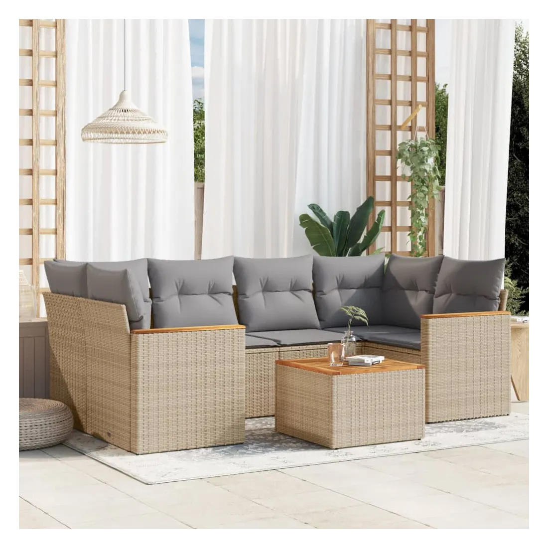 Cet ensemble de canapés de jardin est le complément parfait de votre arrière-cour, terrasse ou patio, offrant un espace confortable et accueillant pour discuter avec la famille et les amis ou simplement se détendre et profiter de l'extérieur. Matériau durable : la résine tressée, également connue sous le nom de poly rotin, est un matériau synthétique solide et nécessitant peu d'entretien qui ressemble au rotin naturel. Il est léger, facile à nettoyer et couramment utilisé pour les meubles d'extérieur en raison de sa durabilité et de ses propriétés de résistance aux intempéries.Fonction de rangement avec sac résistant à l'eau : le mobilier de jardin dispose d'un espace de rangement sous l'assise, complété par un sac résistant à l'eau pour ranger coussins, jouets et autres objets. Le sac intérieur peut être solidement fixé au mobilier d'extérieur grâce à des attaches auto-agrippantes pour plus de stabilité.Dessus stable et facile à nettoyer : cette table de jardin a un dessus en bois d'acacia robuste, durable et facile à nettoyer avec un chiffon humide.Housse amovible et lavable : ces coussins de siège sont dotés de housses amovibles pour un lavage et un entretien faciles.Conception modulaire : cet ensemble de meubles d'extérieur a une conception modulaire, ce qui le rend complètement flexible et facile à déplacer, afin que vous puissiez créer un agencement de meubles d'extérieur personnalisé. Bon à savoir :Pour que vos meubles d'extérieur restent beaux, nous vous recommandons de les protéger avec une housse imperméable.