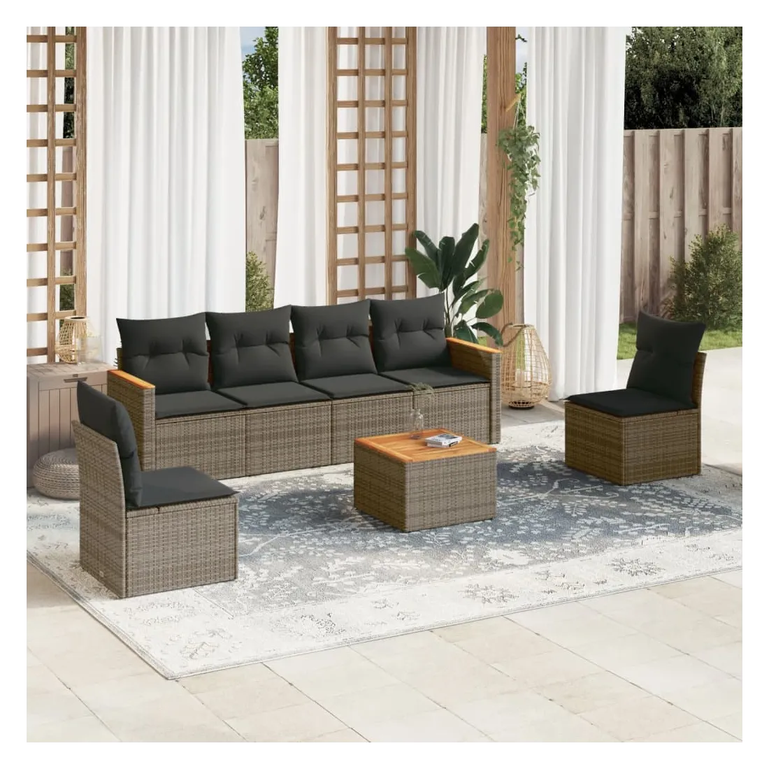 Cet ensemble de canapés de jardin est le complément parfait de votre arrière-cour, terrasse ou patio, offrant un espace confortable et accueillant pour discuter avec la famille et les amis ou simplement se détendre et profiter de l'extérieur. Matériau durable : la résine tressée, également connue sous le nom de poly rotin, est un matériau synthétique solide et nécessitant peu d'entretien qui ressemble au rotin naturel. Il est léger, facile à nettoyer et couramment utilisé pour les meubles d'extérieur en raison de sa durabilité et de ses propriétés de résistance aux intempéries.Fonction de rangement avec sac résistant à l'eau : le mobilier de jardin dispose d'un espace de rangement sous l'assise, complété par un sac résistant à l'eau pour ranger coussins, jouets et autres objets. Le sac intérieur peut être solidement fixé au mobilier d'extérieur grâce à des attaches auto-agrippantes pour plus de stabilité.Dessus stable et facile à nettoyer : cette table de jardin a un dessus en bois d'acacia robuste, durable et facile à nettoyer avec un chiffon humide.Housse amovible et lavable : ces coussins de siège sont dotés de housses amovibles pour un lavage et un entretien faciles.Conception modulaire : cet ensemble de meubles d'extérieur a une conception modulaire, ce qui le rend complètement flexible et facile à déplacer, afin que vous puissiez créer un agencement de meubles d'extérieur personnalisé. Bon à savoir :Pour que vos meubles d'extérieur restent beaux, nous vous recommandons de les protéger avec une housse imperméable.