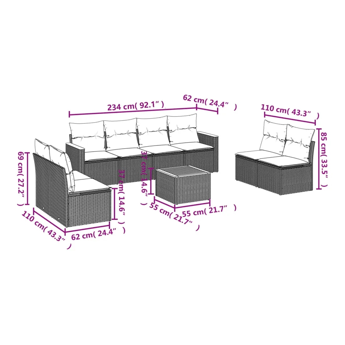 Cet ensemble de canapés de jardin est le complément parfait de votre arrière-cour, terrasse ou patio, offrant un espace confortable et accueillant pour discuter avec la famille et les amis ou simplement se détendre et profiter de l'extérieur. Matériau durable : la résine tressée, également connue sous le nom de poly rotin, est un matériau synthétique solide et nécessitant peu d'entretien qui ressemble au rotin naturel. Il est léger, facile à nettoyer et couramment utilisé pour les meubles d'extérieur en raison de sa durabilité et de ses propriétés de résistance aux intempéries.Fonction de rangement avec sac résistant à l'eau : le mobilier de jardin dispose d'un espace de rangement sous l'assise, complété par un sac résistant à l'eau pour ranger coussins, jouets et autres objets. Le sac intérieur peut être solidement fixé au mobilier d'extérieur grâce à des attaches auto-agrippantes pour plus de stabilité.Dessus stable et facile à nettoyer : cette table de jardin a un dessus en bois d'acacia robuste, durable et facile à nettoyer avec un chiffon humide.Housse amovible et lavable : ces coussins de siège sont dotés de housses amovibles pour un lavage et un entretien faciles.Conception modulaire : cet ensemble de meubles d'extérieur a une conception modulaire, ce qui le rend complètement flexible et facile à déplacer, afin que vous puissiez créer un agencement de meubles d'extérieur personnalisé. Bon à savoir :Pour que vos meubles d'extérieur restent beaux, nous vous recommandons de les protéger avec une housse imperméable.