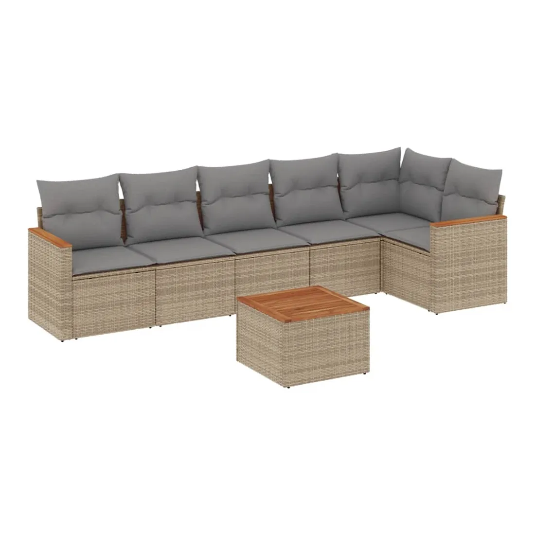 Salon de jardin avec coussins 7 pcs beige résine tressée