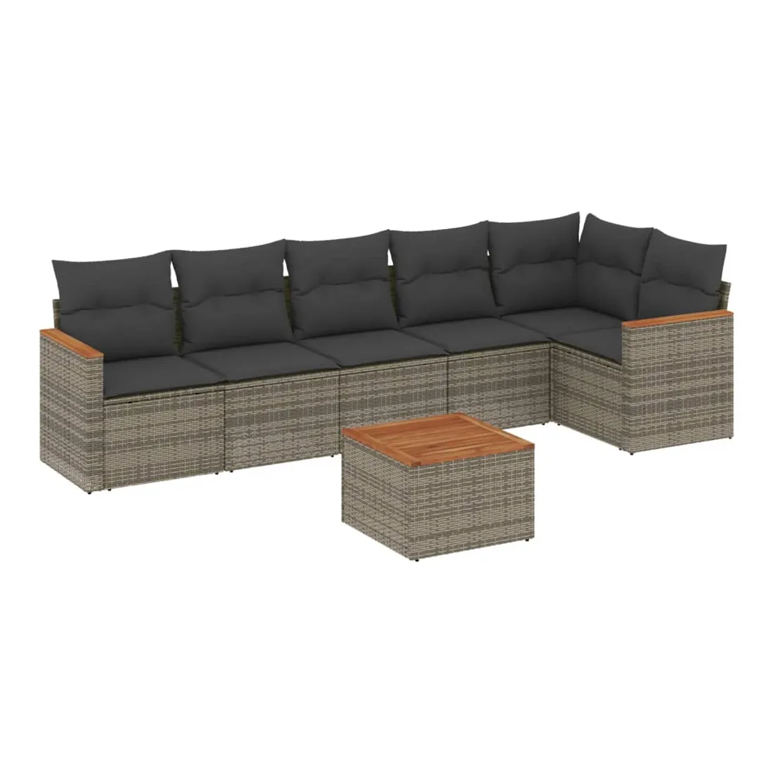 Salon de jardin avec coussins 7 pcs gris résine tressée