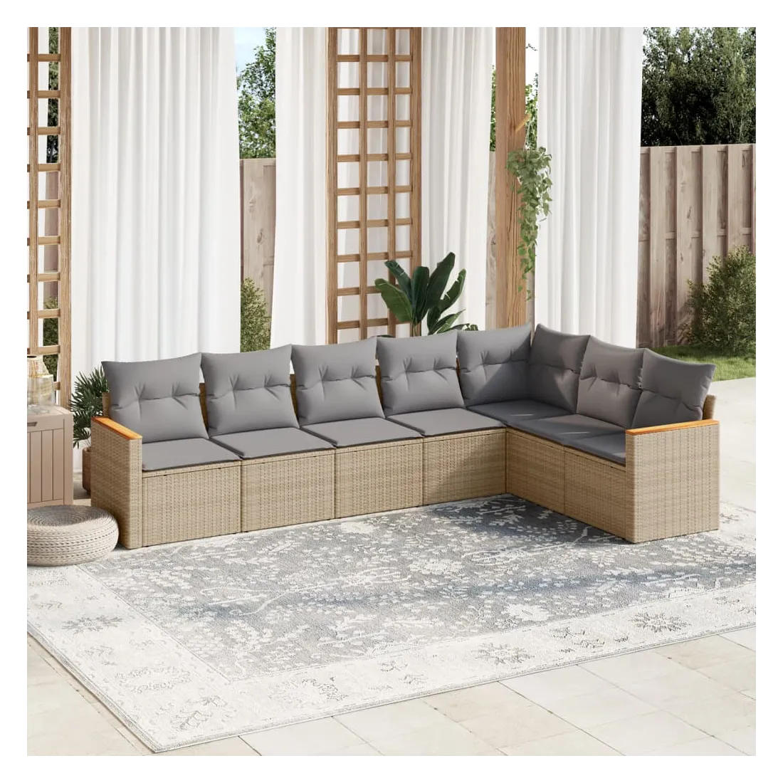 Cet ensemble de canapés de jardin est le complément parfait de votre arrière-cour, terrasse ou patio, offrant un espace confortable et accueillant pour discuter avec la famille et les amis ou simplement se détendre et profiter de l'extérieur. Matériau durable : la résine tressée, également connue sous le nom de poly rotin, est un matériau synthétique solide et nécessitant peu d'entretien qui ressemble au rotin naturel. Il est léger, facile à nettoyer et couramment utilisé pour les meubles d'extérieur en raison de sa durabilité et de ses propriétés de résistance aux intempéries.Fonction de rangement avec sac résistant à l'eau : le mobilier de jardin dispose d'un espace de rangement sous l'assise, complété par un sac résistant à l'eau pour ranger coussins, jouets et autres objets. Le sac intérieur peut être solidement fixé au mobilier d'extérieur grâce à des attaches auto-agrippantes pour plus de stabilité.Housse amovible et lavable : ces coussins de siège sont dotés de housses amovibles pour un lavage et un entretien faciles.Conception modulaire : cet ensemble de meubles d'extérieur a une conception modulaire, ce qui le rend complètement flexible et facile à déplacer, afin que vous puissiez créer un agencement de meubles d'extérieur personnalisé. Bon à savoir :Pour que vos meubles d'extérieur restent beaux, nous vous recommandons de les protéger avec une housse imperméable.