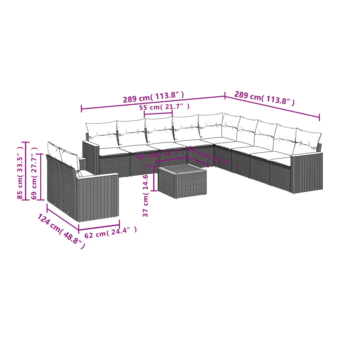 - Dimensions : 55 x 55 x 37 cm (L x l x H)