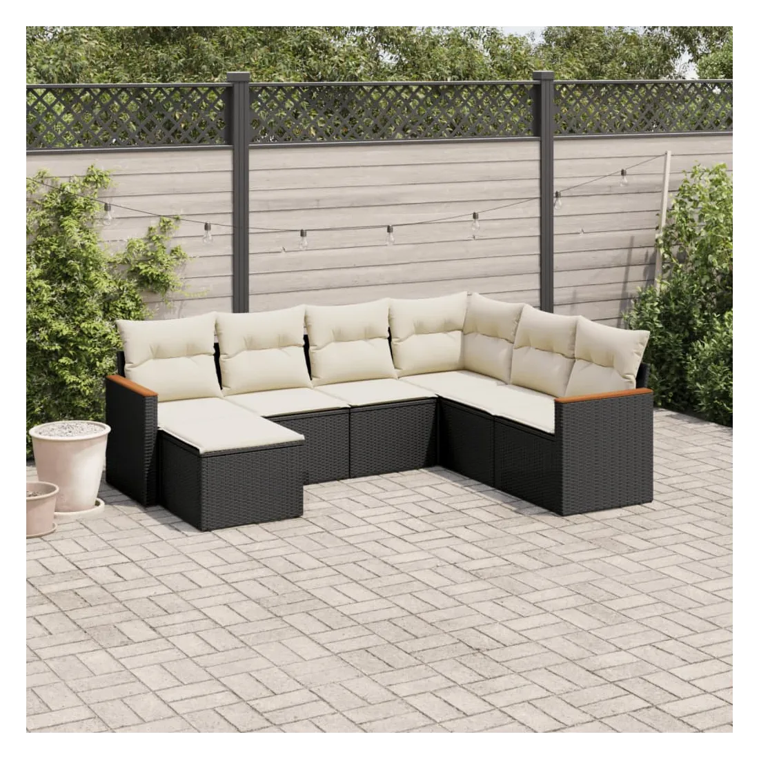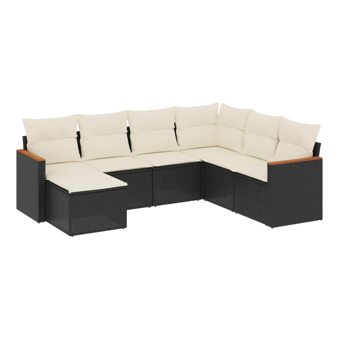 Salon de jardin 7 pcs avec coussins noir résine tressée