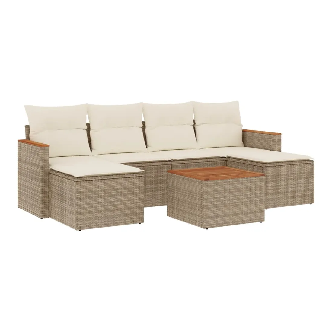 Cet ensemble de canapés de jardin est le complément parfait de votre arrière-cour, terrasse ou patio, offrant un espace confortable et accueillant pour discuter avec la famille et les amis ou simplement se détendre et profiter de l'extérieur. Matériau durable : la résine tressée, également connue sous le nom de poly rotin, est un matériau synthétique solide et nécessitant peu d'entretien qui ressemble au rotin naturel. Il est léger, facile à nettoyer et couramment utilisé pour les meubles d'extérieur en raison de sa durabilité et de ses propriétés de résistance aux intempéries.Fonction de rangement avec sac résistant à l'eau : le mobilier de jardin dispose d'un espace de rangement sous l'assise, complété par un sac résistant à l'eau pour ranger coussins, jouets et autres objets. Le sac intérieur peut être solidement fixé au mobilier d'extérieur grâce à des attaches auto-agrippantes pour plus de stabilité.Dessus stable et facile à nettoyer : cette table de jardin a un dessus en bois d'acacia robuste, durable et facile à nettoyer avec un chiffon humide.Housse amovible et lavable : ces coussins de siège sont dotés de housses amovibles pour un lavage et un entretien faciles.Conception modulaire : cet ensemble de meubles d'extérieur a une conception modulaire, ce qui le rend complètement flexible et facile à déplacer, afin que vous puissiez créer un agencement de meubles d'extérieur personnalisé. Bon à savoir :Pour que vos meubles d'extérieur restent beaux, nous vous recommandons de les protéger avec une housse imperméable.