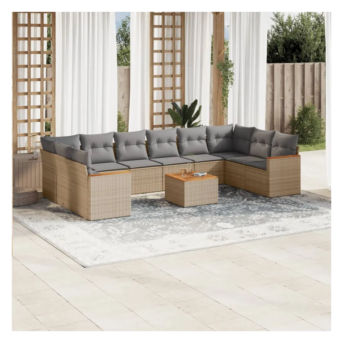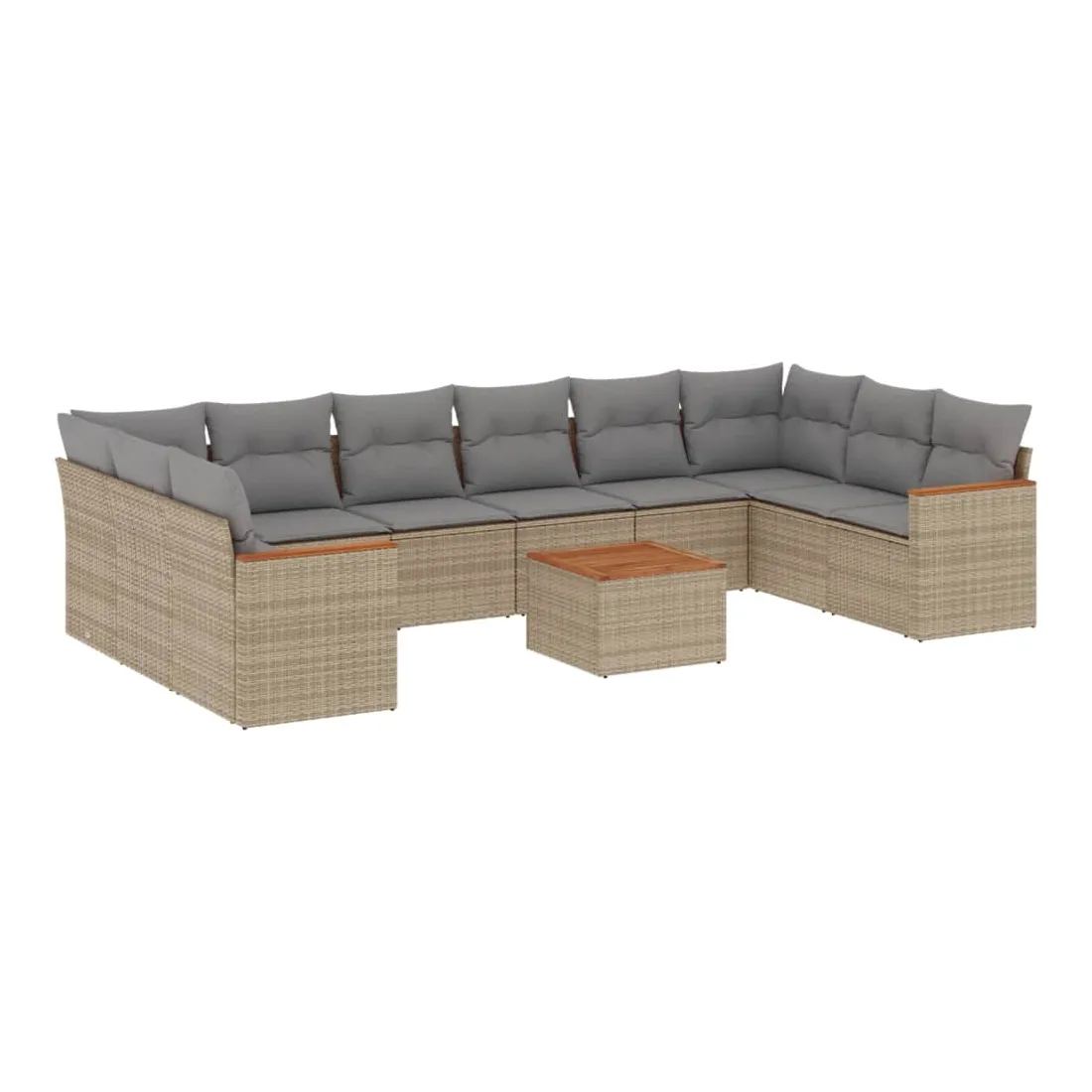 Salon de jardin 11 pcs avec coussins beige résine tressée
