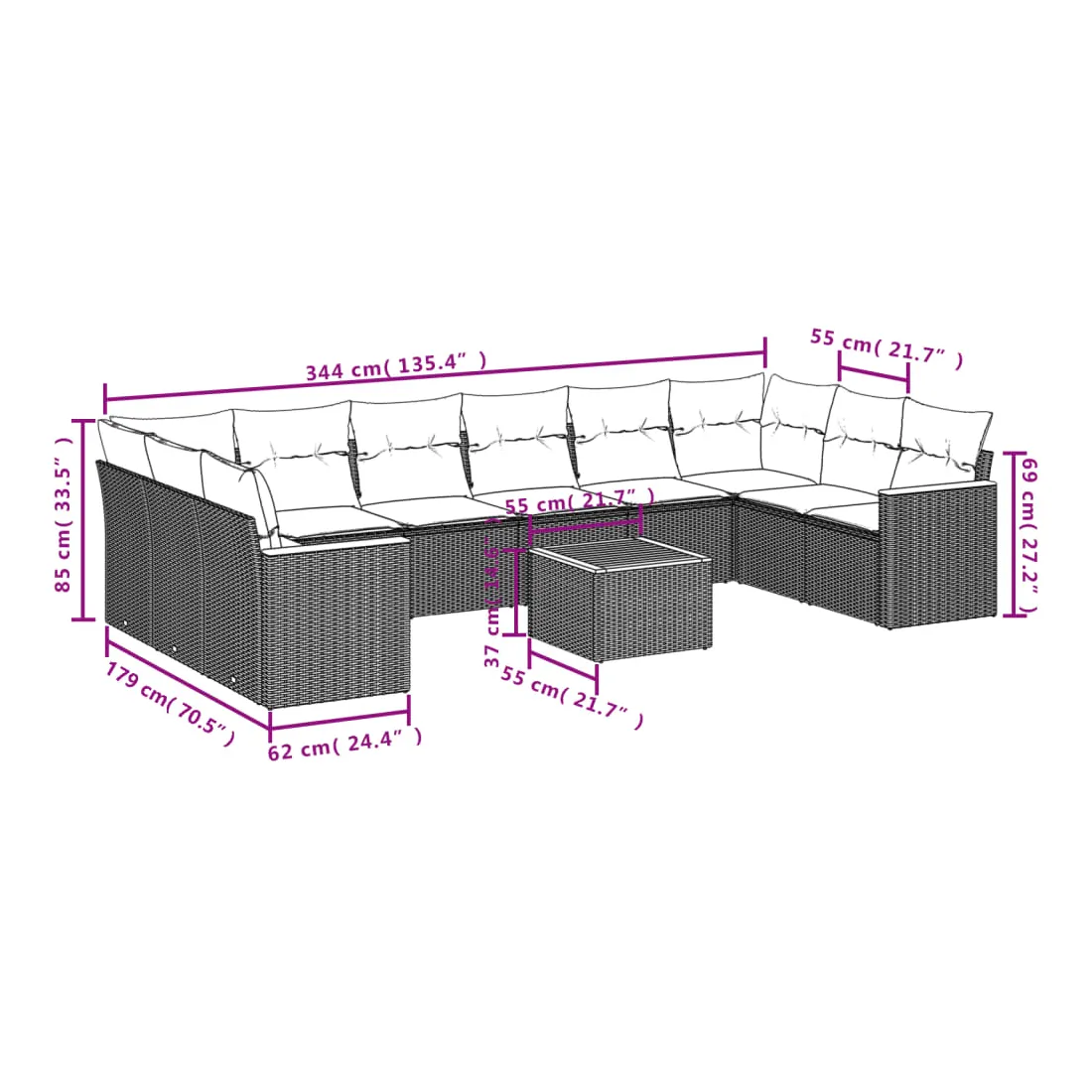 • Dimensions : 55 x 55 x 37 cm (L x l x H)
