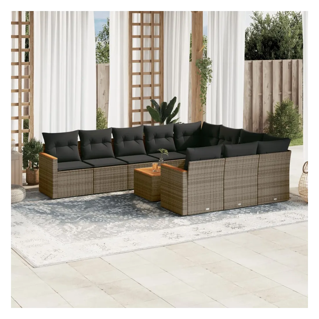 Salon de jardin 11 pcs avec coussins gris résine tressée