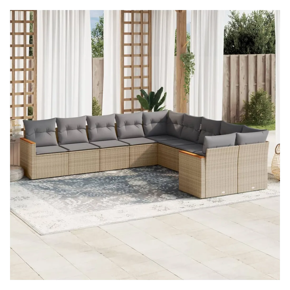Salon de jardin avec coussins 10 pcs beige résine tressée