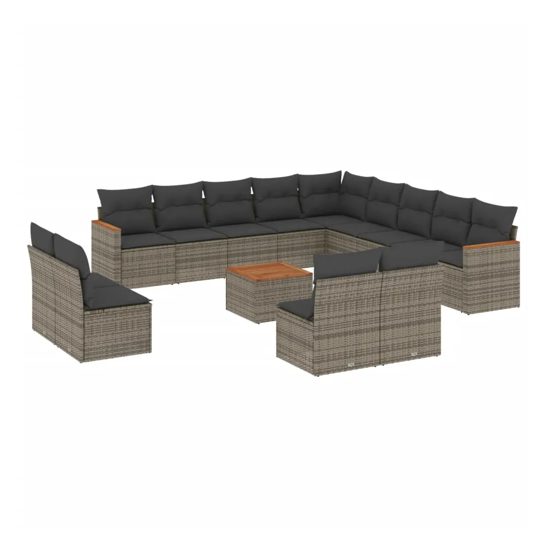 Cet ensemble de canapés de jardin est le complément parfait de votre arrière-cour, terrasse ou patio, offrant un espace confortable et accueillant pour discuter avec la famille et les amis ou simplement se détendre et profiter de l'extérieur. Matériau durable : la résine tressée, également connue sous le nom de poly rotin, est un matériau synthétique solide et nécessitant peu d'entretien qui ressemble au rotin naturel. Il est léger, facile à nettoyer et couramment utilisé pour les meubles d'extérieur en raison de sa durabilité et de ses propriétés de résistance aux intempéries.Fonction de rangement avec sac résistant à l'eau : le mobilier de jardin dispose d'un espace de rangement sous l'assise, complété par un sac résistant à l'eau pour ranger coussins, jouets et autres objets. Le sac intérieur peut être solidement fixé au mobilier d'extérieur grâce à des attaches auto-agrippantes pour plus de stabilité.Dessus stable et facile à nettoyer : cette table de jardin a un dessus en bois d'acacia robuste, durable et facile à nettoyer avec un chiffon humide.Housse amovible et lavable : ces coussins de siège sont dotés de housses amovibles pour un lavage et un entretien faciles.Conception modulaire : cet ensemble de meubles d'extérieur a une conception modulaire, ce qui le rend complètement flexible et facile à déplacer, afin que vous puissiez créer un agencement de meubles d'extérieur personnalisé. Bon à savoir :Pour que vos meubles d'extérieur restent beaux, nous vous recommandons de les protéger avec une housse imperméable.