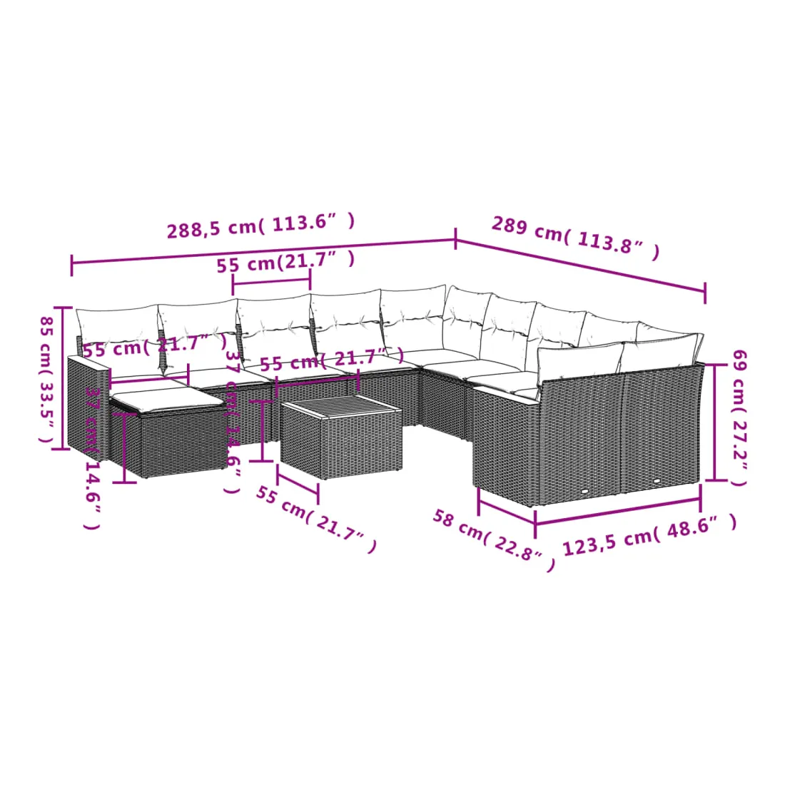 - Dimensions : 55 x 55 x 37 cm (L x l x H)
