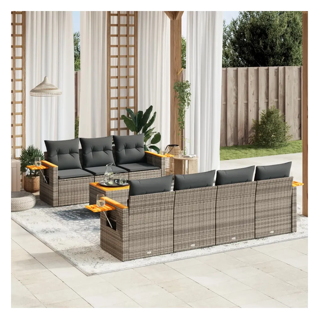 Cet ensemble de canapés de jardin est le complément parfait de votre arrière-cour, terrasse ou patio, offrant un espace confortable et accueillant pour discuter avec la famille et les amis ou simplement se détendre et profiter de l'extérieur. Matériau durable : la résine tressée, également connue sous le nom de poly rotin, est un matériau synthétique solide et nécessitant peu d'entretien qui ressemble au rotin naturel. Il est léger, facile à nettoyer et couramment utilisé pour les meubles d'extérieur en raison de sa durabilité et de ses propriétés de résistance aux intempéries.Fonction de rangement avec sac résistant à l'eau : le mobilier de jardin dispose d'un espace de rangement sous l'assise, complété par un sac résistant à l'eau pour ranger coussins, jouets et autres objets. Le sac intérieur peut être solidement fixé au mobilier d'extérieur grâce à des attaches auto-agrippantes pour plus de stabilité.Table d'appoint pratique : ce mobilier d'extérieur comprend une table d'appoint pliable avec un ressort à gaz sur les accoudoirs, offrant un endroit pratique pour garder vos essentiels à portée de main.Housse amovible et lavable : ces coussins de siège sont dotés de housses amovibles pour un lavage et un entretien faciles.Conception modulaire : cet ensemble de meubles d'extérieur a une conception modulaire, ce qui le rend complètement flexible et facile à déplacer, afin que vous puissiez créer un agencement de meubles d'extérieur personnalisé. Bon à savoir :Pour que vos meubles d'extérieur restent beaux, nous vous recommandons de les protéger avec une housse imperméable.