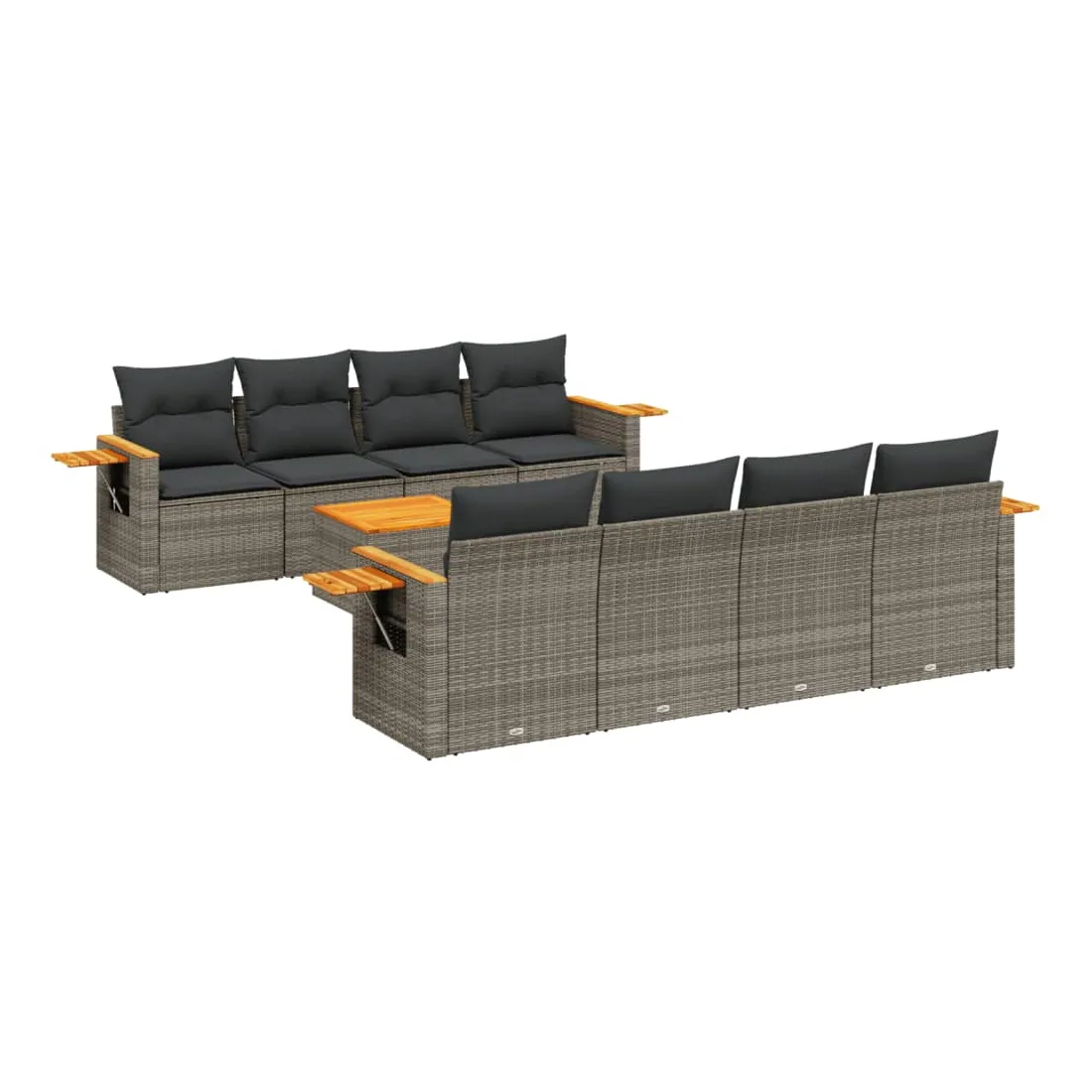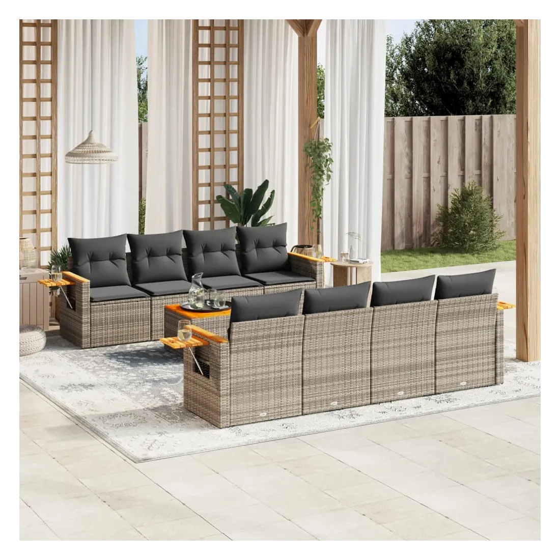 Cet ensemble de canapés de jardin est le complément parfait de votre arrière-cour, terrasse ou patio, offrant un espace confortable et accueillant pour discuter avec la famille et les amis ou simplement se détendre et profiter de l'extérieur. Matériau durable : la résine tressée, également connue sous le nom de poly rotin, est un matériau synthétique solide et nécessitant peu d'entretien qui ressemble au rotin naturel. Il est léger, facile à nettoyer et couramment utilisé pour les meubles d'extérieur en raison de sa durabilité et de ses propriétés de résistance aux intempéries.Fonction de rangement avec sac résistant à l'eau : le mobilier de jardin dispose d'un espace de rangement sous l'assise, complété par un sac résistant à l'eau pour ranger coussins, jouets et autres objets. Le sac intérieur peut être solidement fixé au mobilier d'extérieur grâce à des attaches auto-agrippantes pour plus de stabilité.Table d'appoint pratique : ce mobilier d'extérieur comprend une table d'appoint pliable avec un ressort à gaz sur les accoudoirs, offrant un endroit pratique pour garder vos essentiels à portée de main.Housse amovible et lavable : ces coussins de siège sont dotés de housses amovibles pour un lavage et un entretien faciles.Conception modulaire : cet ensemble de meubles d'extérieur a une conception modulaire, ce qui le rend complètement flexible et facile à déplacer, afin que vous puissiez créer un agencement de meubles d'extérieur personnalisé. Bon à savoir :Pour que vos meubles d'extérieur restent beaux, nous vous recommandons de les protéger avec une housse imperméable.