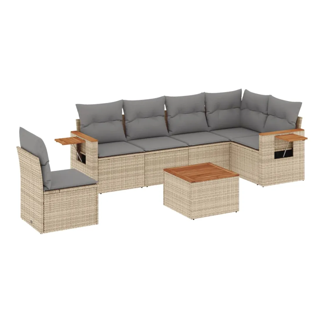 Salon de jardin avec coussins 7 pcs beige résine tressée