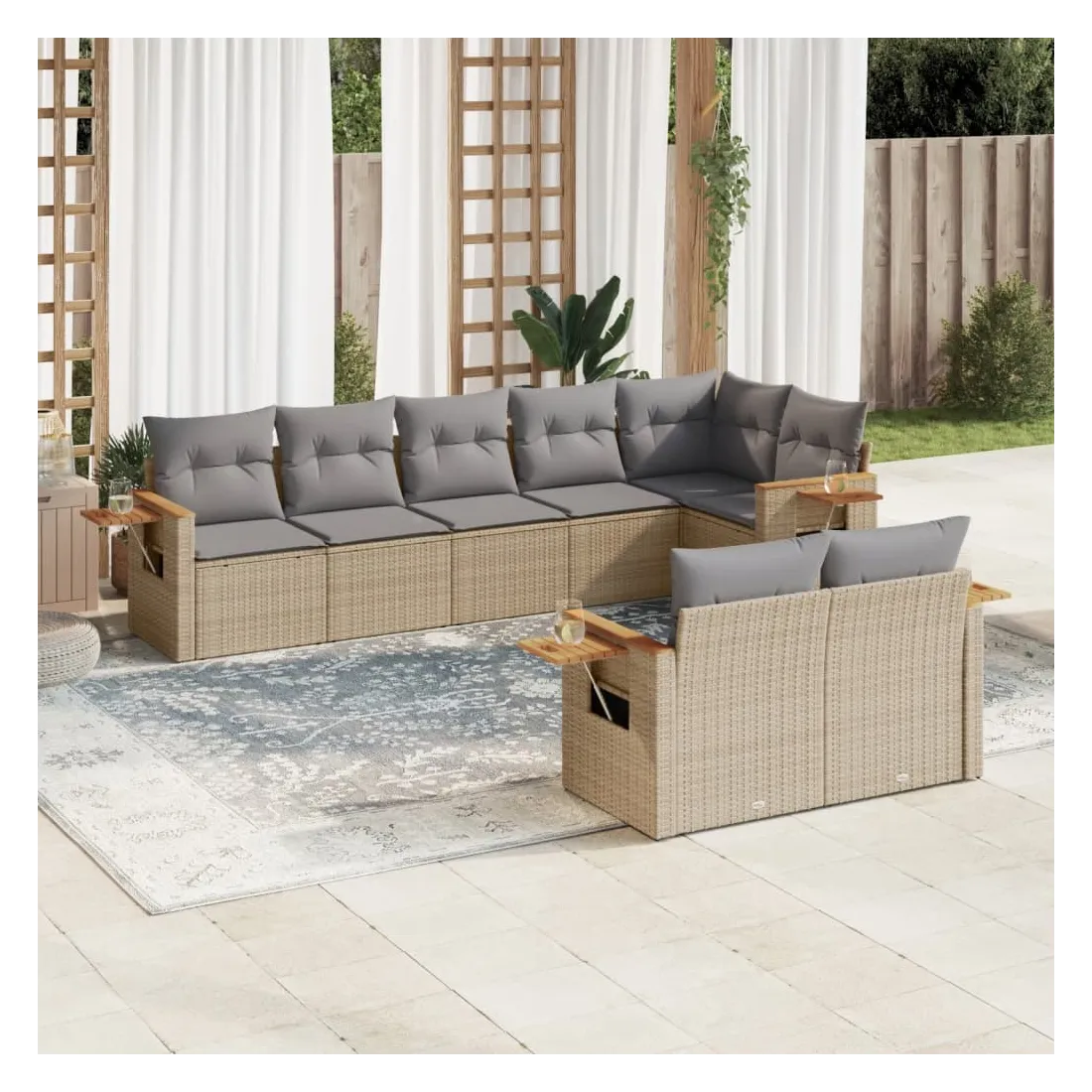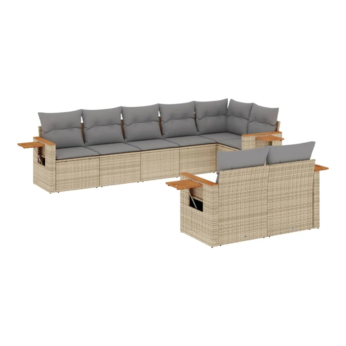 Salon de jardin avec coussins 8 pcs beige résine tressée