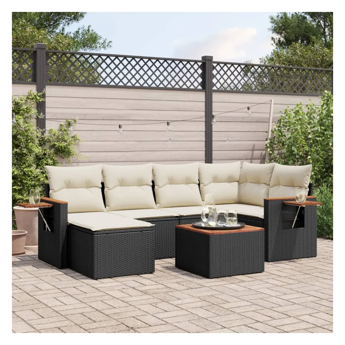 Cet ensemble de canapés de jardin est le complément parfait de votre arrière-cour, terrasse ou patio, offrant un espace confortable et accueillant pour discuter avec la famille et les amis ou simplement se détendre et profiter de l'extérieur. Matériau durable : la résine tressée, également connue sous le nom de poly rotin, est un matériau synthétique solide et nécessitant peu d'entretien qui ressemble au rotin naturel. Il est léger, facile à nettoyer et couramment utilisé pour les meubles d'extérieur en raison de sa durabilité et de ses propriétés de résistance aux intempéries.Fonction de rangement avec sac résistant à l'eau : le mobilier de jardin dispose d'un espace de rangement sous l'assise, complété par un sac résistant à l'eau pour ranger coussins, jouets et autres objets. Le sac intérieur peut être solidement fixé au mobilier d'extérieur grâce à des attaches auto-agrippantes pour plus de stabilité.Table d'appoint pratique : ce mobilier d'extérieur comprend une table d'appoint pliable avec un ressort à gaz sur les accoudoirs, offrant un endroit pratique pour garder vos essentiels à portée de main.Housse amovible et lavable : ces coussins de siège sont dotés de housses amovibles pour un lavage et un entretien faciles.Conception modulaire : cet ensemble de meubles d'extérieur a une conception modulaire, ce qui le rend complètement flexible et facile à déplacer, afin que vous puissiez créer un agencement de meubles d'extérieur personnalisé. Bon à savoir :Pour que vos meubles d'extérieur restent beaux, nous vous recommandons de les protéger avec une housse imperméable.