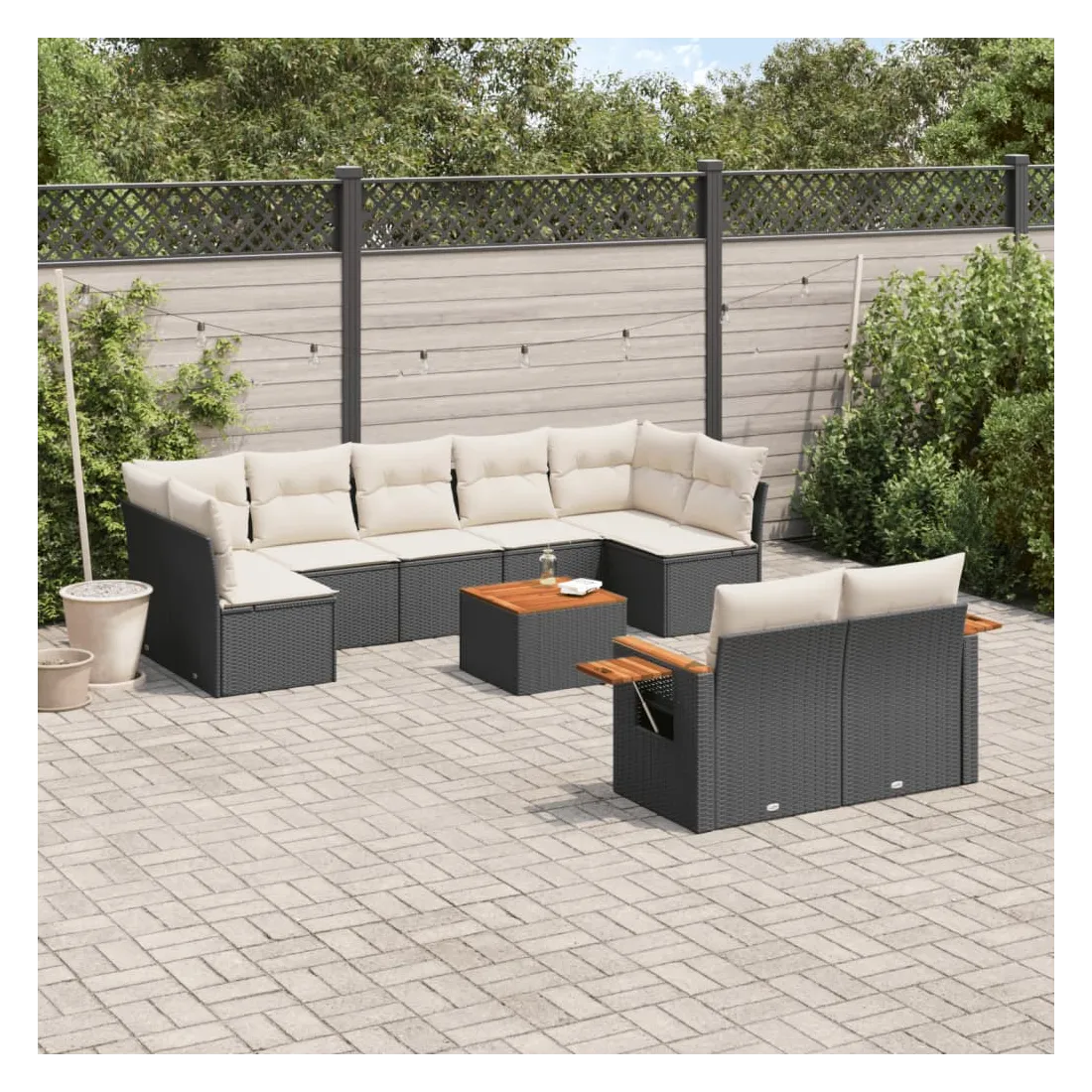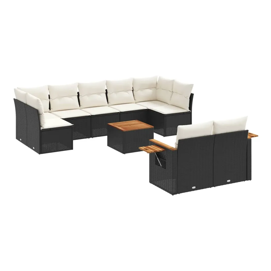 Salon de jardin 10 pcs avec coussins noir résine tressée