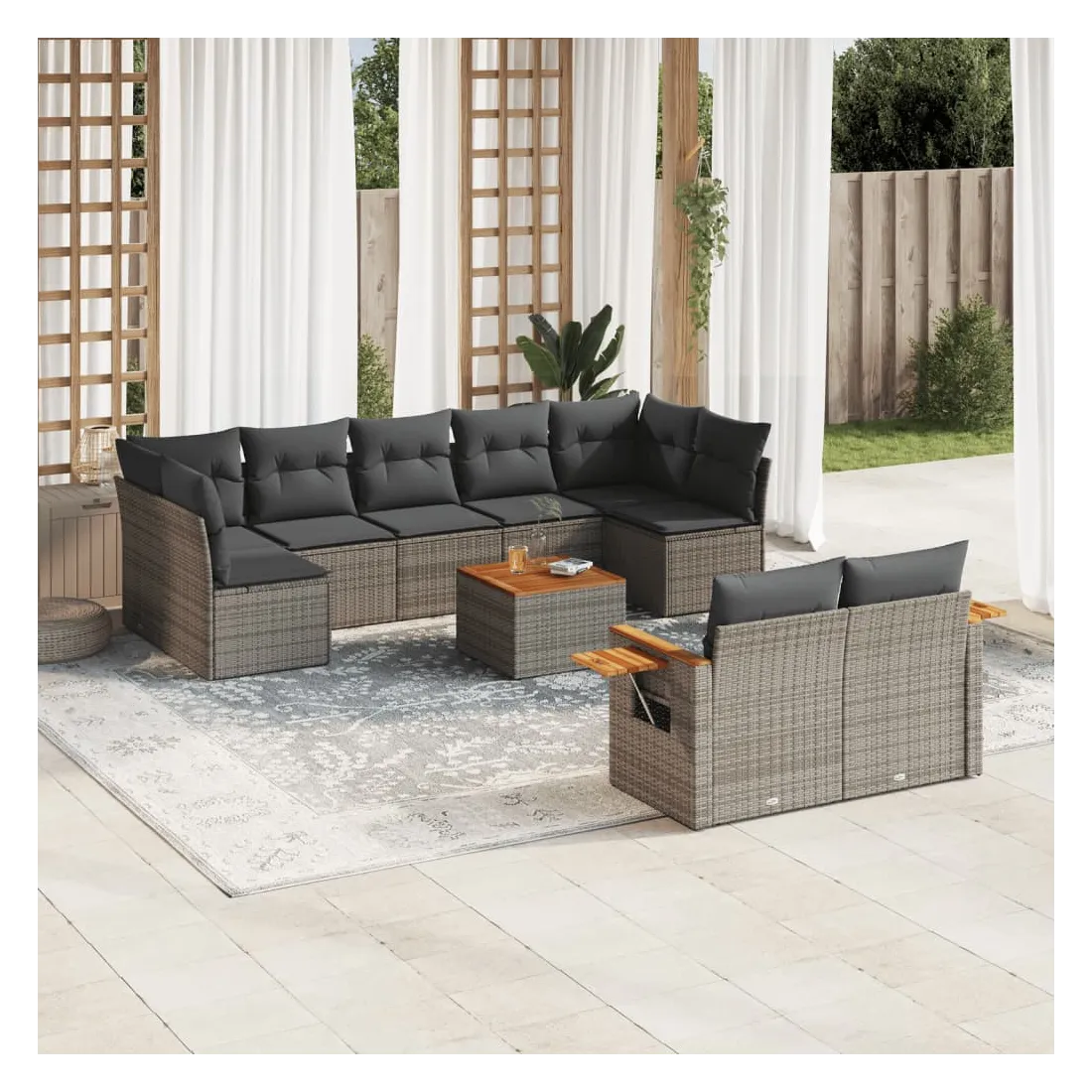 Salon de jardin avec coussins 10 pcs gris résine tressée