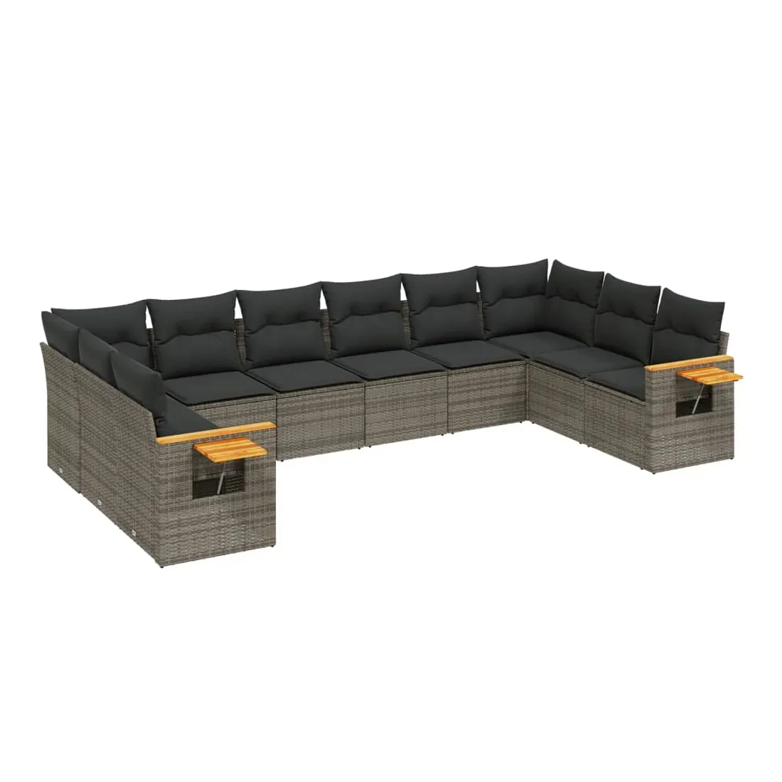 Cet ensemble de canapés de jardin est le complément parfait de votre arrière-cour, terrasse ou patio, offrant un espace confortable et accueillant pour discuter avec la famille et les amis ou simplement se détendre et profiter de l'extérieur. Matériau durable : la résine tressée, également connue sous le nom de poly rotin, est un matériau synthétique solide et nécessitant peu d'entretien qui ressemble au rotin naturel. Il est léger, facile à nettoyer et couramment utilisé pour les meubles d'extérieur en raison de sa durabilité et de ses propriétés de résistance aux intempéries.Fonction de rangement avec sac résistant à l'eau : le mobilier de jardin dispose d'un espace de rangement sous l'assise, complété par un sac résistant à l'eau pour ranger coussins, jouets et autres objets. Le sac intérieur peut être solidement fixé au mobilier d'extérieur grâce à des attaches auto-agrippantes pour plus de stabilité.Table d'appoint pratique : ce mobilier d'extérieur comprend une table d'appoint pliable avec un ressort à gaz sur les accoudoirs, offrant un endroit pratique pour garder vos essentiels à portée de main.Housse amovible et lavable : ces coussins de siège sont dotés de housses amovibles pour un lavage et un entretien faciles.Conception modulaire : cet ensemble de meubles d'extérieur a une conception modulaire, ce qui le rend complètement flexible et facile à déplacer, afin que vous puissiez créer un agencement de meubles d'extérieur personnalisé. Bon à savoir :Pour que vos meubles d'extérieur restent beaux, nous vous recommandons de les protéger avec une housse imperméable.