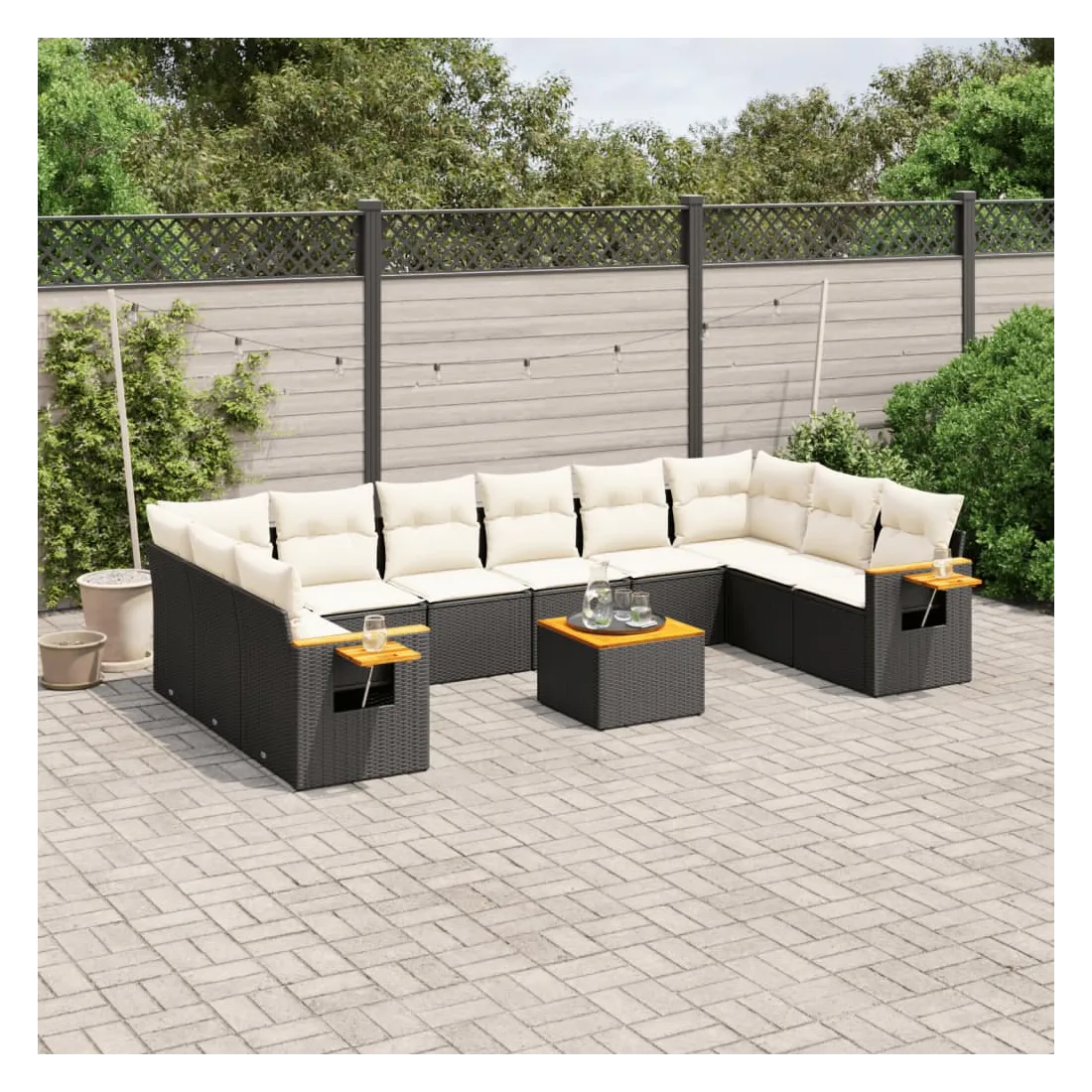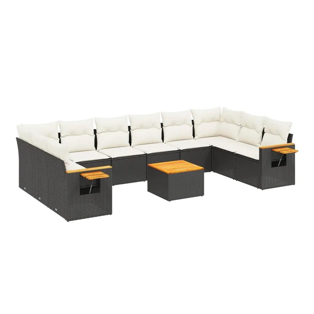 Salon de jardin 11 pcs avec coussins noir résine tressée