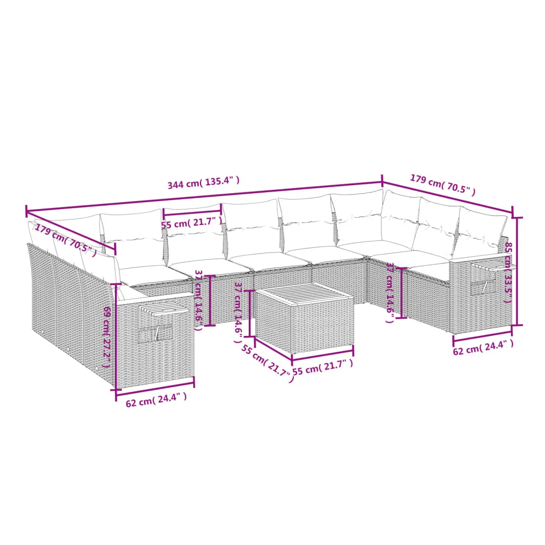 • Dimensions : 55 x 55 x 37 cm (L x l x H)