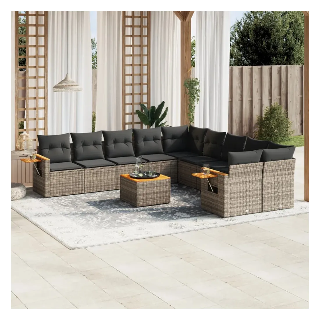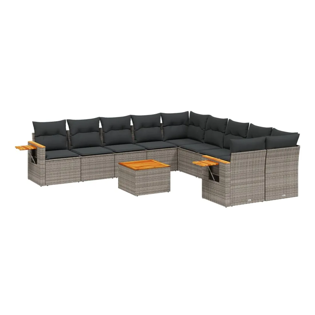 Salon de jardin 11 pcs avec coussins gris résine tressée