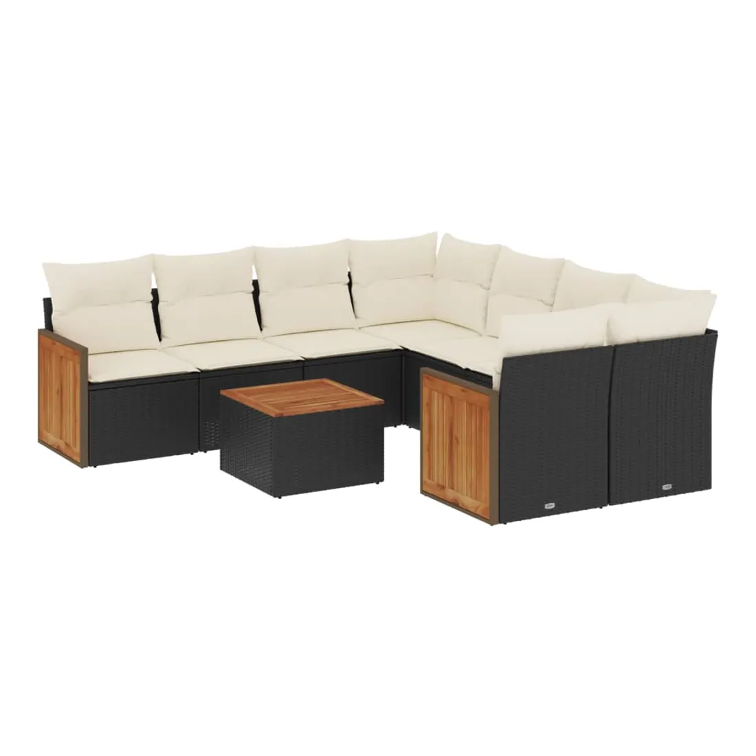 Cet ensemble de canapés de jardin est le complément parfait de votre arrière-cour, terrasse ou patio, offrant un espace confortable et accueillant pour discuter avec la famille et les amis ou simplement se détendre et profiter de l'extérieur. Matériau durable : la résine tressée, également connue sous le nom de poly rotin, est un matériau synthétique solide et nécessitant peu d'entretien qui ressemble au rotin naturel. Il est léger, facile à nettoyer et couramment utilisé pour les meubles d'extérieur en raison de sa durabilité et de ses propriétés de résistance aux intempéries.Fonction de rangement avec sac résistant à l'eau : le mobilier de jardin dispose d'un espace de rangement sous l'assise, complété par un sac résistant à l'eau pour ranger coussins, jouets et autres objets. Le sac intérieur peut être solidement fixé au mobilier d'extérieur grâce à des attaches auto-agrippantes pour plus de stabilité.Dessus stable et facile à nettoyer : cette table de jardin a un dessus en bois d'acacia robuste, durable et facile à nettoyer avec un chiffon humide.Housse amovible et lavable : ces coussins de siège sont dotés de housses amovibles pour un lavage et un entretien faciles.Conception modulaire : cet ensemble de meubles d'extérieur a une conception modulaire, ce qui le rend complètement flexible et facile à déplacer, afin que vous puissiez créer un agencement de meubles d'extérieur personnalisé. Bon à savoir :Pour que vos meubles d'extérieur restent beaux, nous vous recommandons de les protéger avec une housse imperméable.