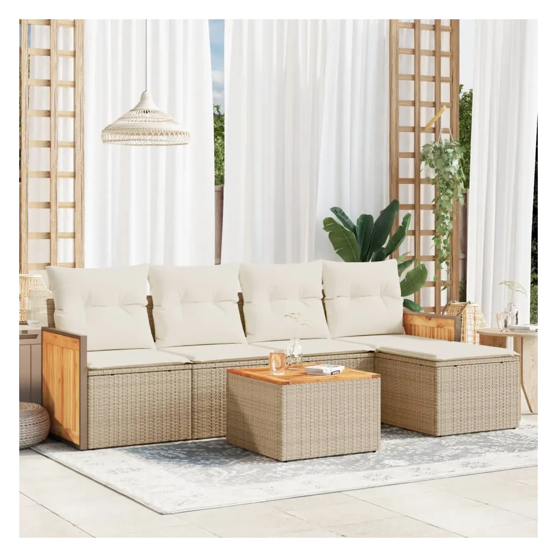 Cet ensemble de canapés de jardin est le complément parfait de votre arrière-cour, terrasse ou patio, offrant un espace confortable et accueillant pour discuter avec la famille et les amis ou simplement se détendre et profiter de l'extérieur. Matériau durable : la résine tressée, également connue sous le nom de poly rotin, est un matériau synthétique solide et nécessitant peu d'entretien qui ressemble au rotin naturel. Il est léger, facile à nettoyer et couramment utilisé pour les meubles d'extérieur en raison de sa durabilité et de ses propriétés de résistance aux intempéries.Fonction de rangement avec sac résistant à l'eau : le mobilier de jardin dispose d'un espace de rangement sous l'assise, complété par un sac résistant à l'eau pour ranger coussins, jouets et autres objets. Le sac intérieur peut être solidement fixé au mobilier d'extérieur grâce à des attaches auto-agrippantes pour plus de stabilité.Dessus stable et facile à nettoyer : cette table de jardin a un dessus en bois d'acacia robuste, durable et facile à nettoyer avec un chiffon humide.Housse amovible et lavable : ces coussins de siège sont dotés de housses amovibles pour un lavage et un entretien faciles.Conception modulaire : cet ensemble de meubles d'extérieur a une conception modulaire, ce qui le rend complètement flexible et facile à déplacer, afin que vous puissiez créer un agencement de meubles d'extérieur personnalisé. Bon à savoir :Pour que vos meubles d'extérieur restent beaux, nous vous recommandons de les protéger avec une housse imperméable.