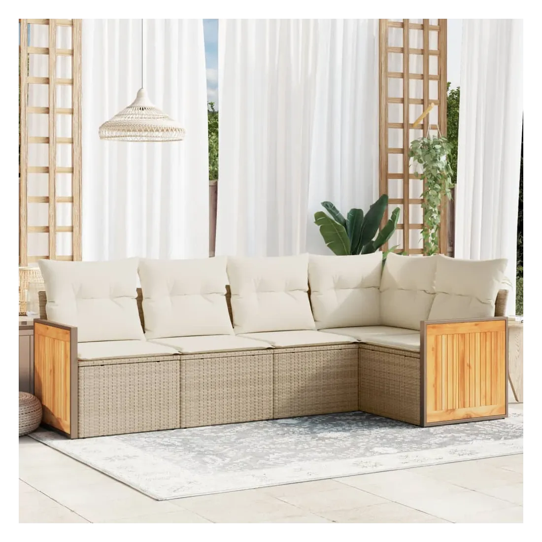- Matériau : résine tressée, acier enduit de poudre, bois d'acacia massif avec finition à l'huile