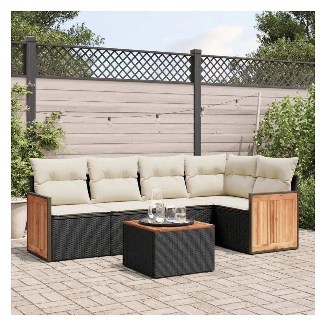 Cet ensemble de canapés de jardin est le complément parfait de votre arrière-cour, terrasse ou patio, offrant un espace confortable et accueillant pour discuter avec la famille et les amis ou simplement se détendre et profiter de l'extérieur. Matériau durable : la résine tressée, également connue sous le nom de poly rotin, est un matériau synthétique solide et nécessitant peu d'entretien qui ressemble au rotin naturel. Il est léger, facile à nettoyer et couramment utilisé pour les meubles d'extérieur en raison de sa durabilité et de ses propriétés de résistance aux intempéries.Fonction de rangement avec sac résistant à l'eau : le mobilier de jardin dispose d'un espace de rangement sous l'assise, complété par un sac résistant à l'eau pour ranger coussins, jouets et autres objets. Le sac intérieur peut être solidement fixé au mobilier d'extérieur grâce à des attaches auto-agrippantes pour plus de stabilité.Dessus stable et facile à nettoyer : cette table de jardin a un dessus en bois d'acacia robuste, durable et facile à nettoyer avec un chiffon humide.Housse amovible et lavable : ces coussins de siège sont dotés de housses amovibles pour un lavage et un entretien faciles.Conception modulaire : cet ensemble de meubles d'extérieur a une conception modulaire, ce qui le rend complètement flexible et facile à déplacer, afin que vous puissiez créer un agencement de meubles d'extérieur personnalisé. Bon à savoir :Pour que vos meubles d'extérieur restent beaux, nous vous recommandons de les protéger avec une housse imperméable.