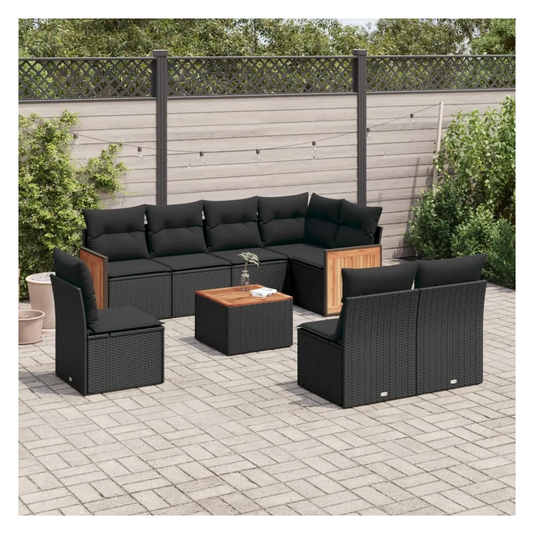 Cet ensemble de canapés de jardin est le complément parfait de votre arrière-cour, terrasse ou patio, offrant un espace confortable et accueillant pour discuter avec la famille et les amis ou simplement se détendre et profiter de l'extérieur. Matériau durable : la résine tressée, également connue sous le nom de poly rotin, est un matériau synthétique solide et nécessitant peu d'entretien qui ressemble au rotin naturel. Il est léger, facile à nettoyer et couramment utilisé pour les meubles d'extérieur en raison de sa durabilité et de ses propriétés de résistance aux intempéries.Fonction de rangement avec sac résistant à l'eau : le mobilier de jardin dispose d'un espace de rangement sous l'assise, complété par un sac résistant à l'eau pour ranger coussins, jouets et autres objets. Le sac intérieur peut être solidement fixé au mobilier d'extérieur grâce à des attaches auto-agrippantes pour plus de stabilité.Dessus stable et facile à nettoyer : cette table de jardin a un dessus en bois d'acacia robuste, durable et facile à nettoyer avec un chiffon humide.Housse amovible et lavable : ces coussins de siège sont dotés de housses amovibles pour un lavage et un entretien faciles.Conception modulaire : cet ensemble de meubles d'extérieur a une conception modulaire, ce qui le rend complètement flexible et facile à déplacer, afin que vous puissiez créer un agencement de meubles d'extérieur personnalisé. Bon à savoir :Pour que vos meubles d'extérieur restent beaux, nous vous recommandons de les protéger avec une housse imperméable.