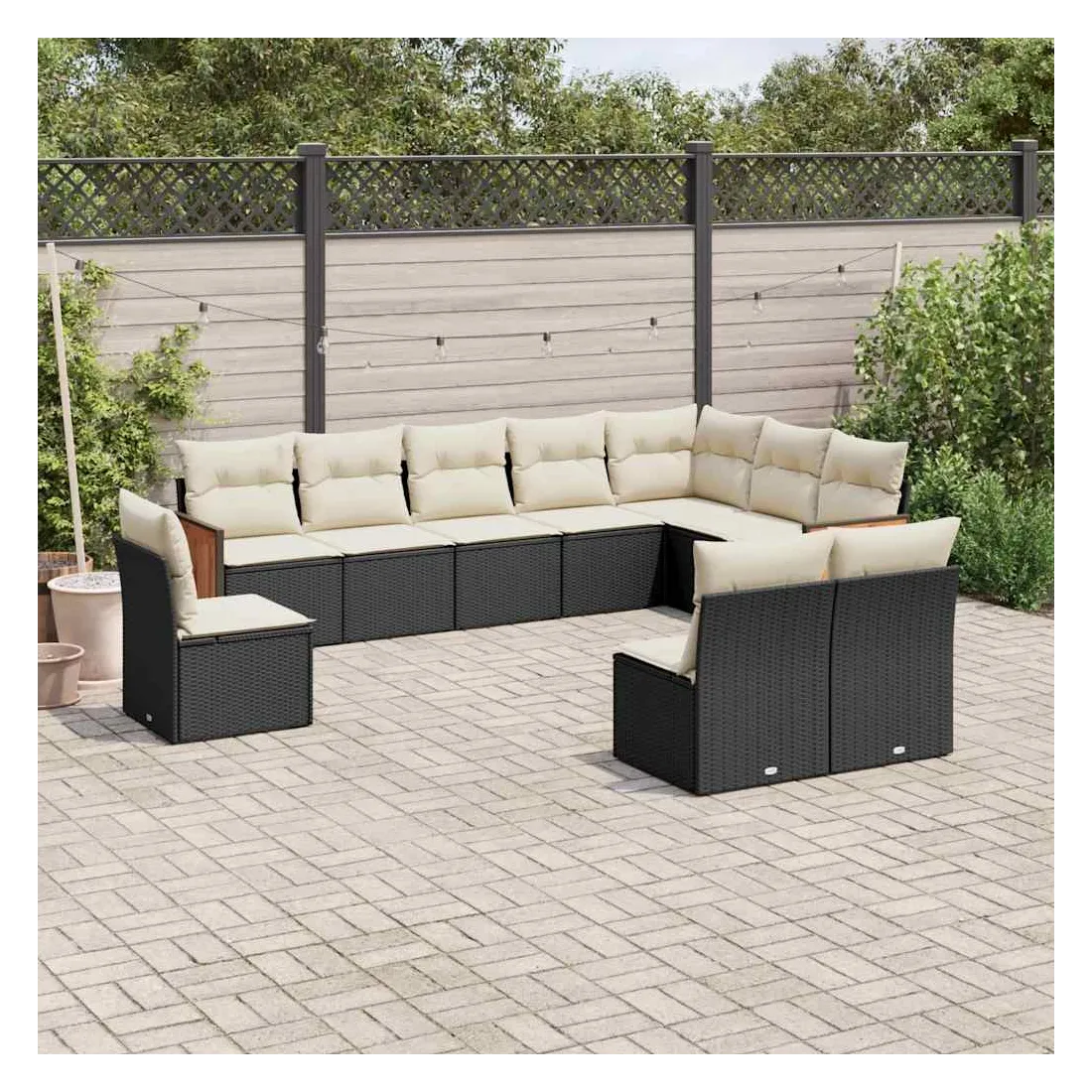 Cet ensemble de canapés de jardin est le complément parfait de votre arrière-cour, terrasse ou patio, offrant un espace confortable et accueillant pour discuter avec la famille et les amis ou simplement se détendre et profiter de l'extérieur. Matériau durable : la résine tressée, également connue sous le nom de poly rotin, est un matériau synthétique solide et nécessitant peu d'entretien qui ressemble au rotin naturel. Il est léger, facile à nettoyer et couramment utilisé pour les meubles d'extérieur en raison de sa durabilité et de ses propriétés de résistance aux intempéries.Fonction de rangement avec sac résistant à l'eau : le mobilier de jardin dispose d'un espace de rangement sous l'assise, complété par un sac résistant à l'eau pour ranger coussins, jouets et autres objets. Le sac intérieur peut être solidement fixé au mobilier d'extérieur grâce à des attaches auto-agrippantes pour plus de stabilité.Housse amovible et lavable : ces coussins de siège sont dotés de housses amovibles pour un lavage et un entretien faciles.Conception modulaire : cet ensemble de meubles d'extérieur a une conception modulaire, ce qui le rend complètement flexible et facile à déplacer, afin que vous puissiez créer un agencement de meubles d'extérieur personnalisé. Bon à savoir :Pour que vos meubles d'extérieur restent beaux, nous vous recommandons de les protéger avec une housse imperméable.