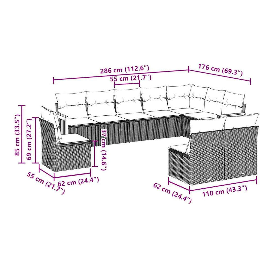 - Dimensions du coussin de dossier : 55 x 45 x 13 cm (L x l x é)