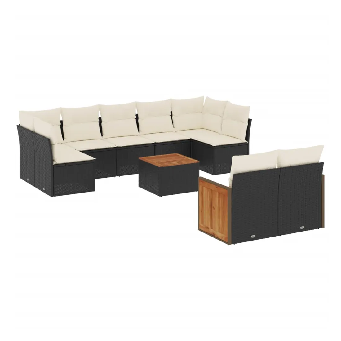 Salon de jardin 10 pcs avec coussins noir résine tressée